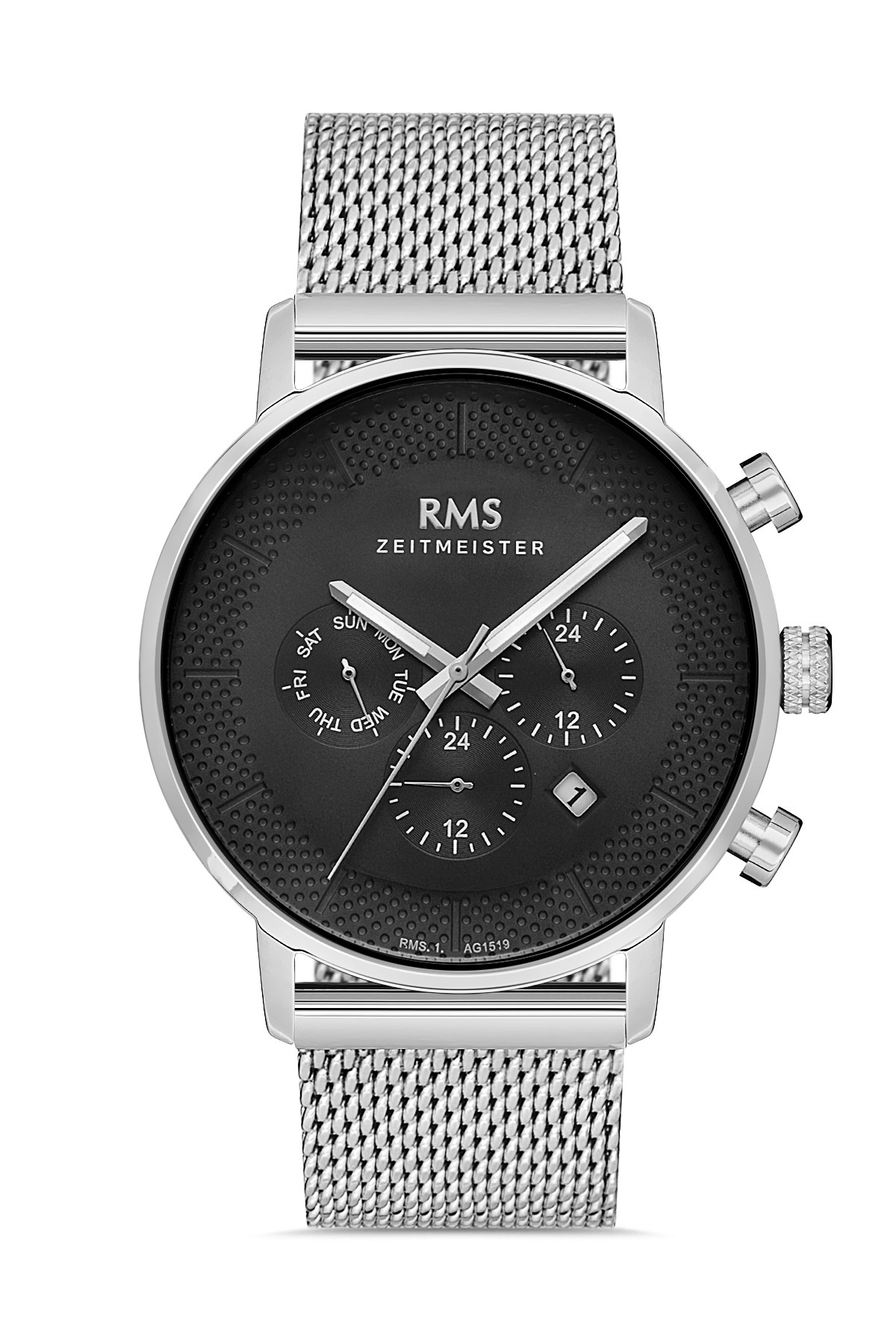 Erkek - Multi̇ Fonksi̇yon - Gümüş - Si̇yah - Çeli̇k Örme Kordon - 3 Atm - Sertleşti̇ri̇lmi̇ş Mi̇neral Cam - Grand Romanson