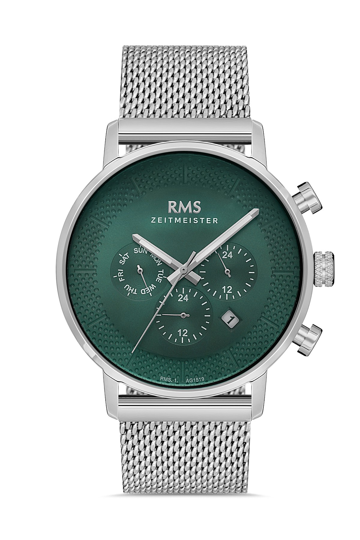 Erkek - Multi̇ Fonksi̇yon - Gümüş - Yeşi̇l - Çeli̇k Örme Kordon - 3 Atm - Sertleşti̇ri̇lmi̇ş Mi̇neral Cam - Grand Romanson
