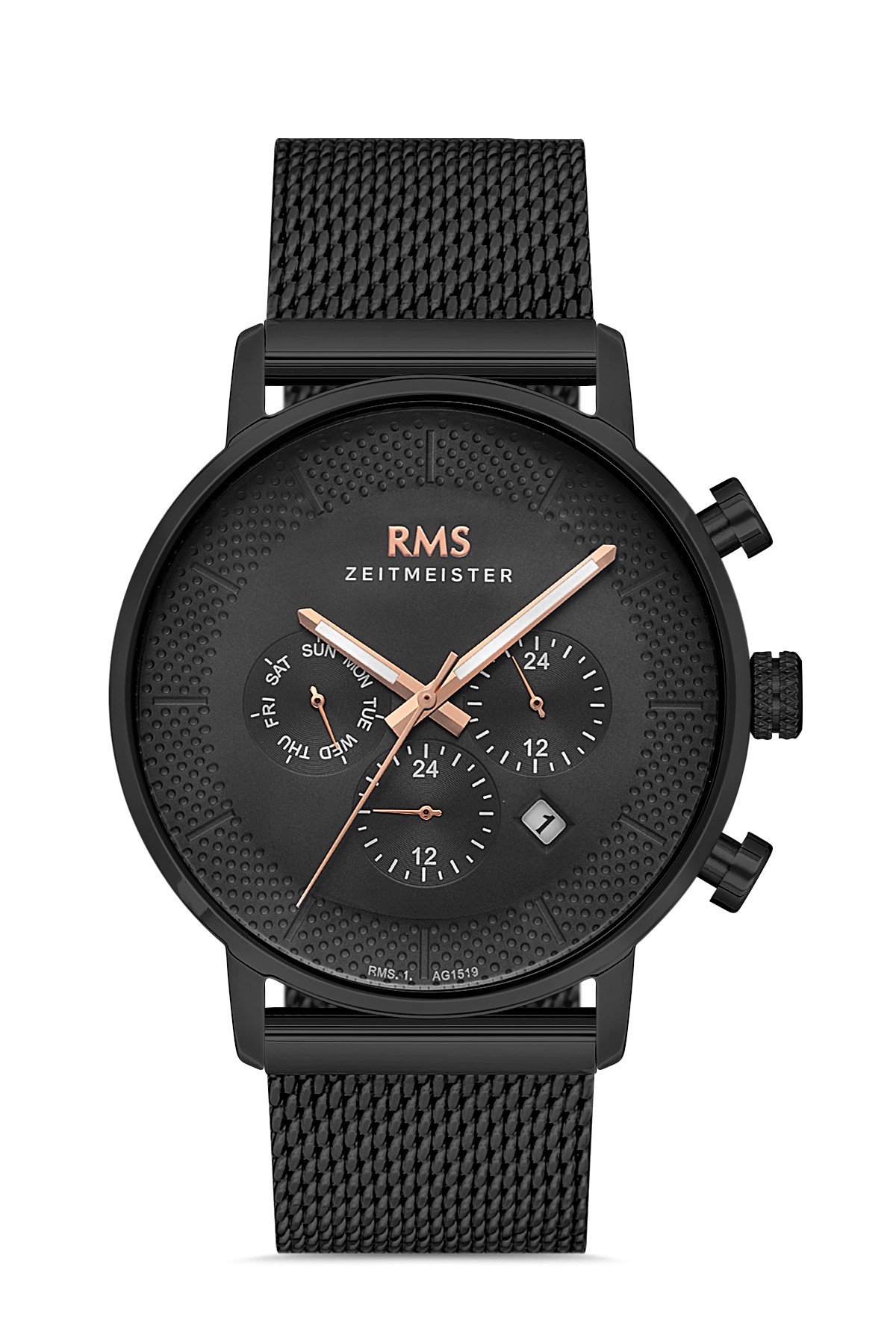 Erkek - Multi̇ Fonksi̇yon - Si̇yah - Si̇yah - Çeli̇k Örme Kordon - 3 Atm - Sertleşti̇ri̇lmi̇ş Mi̇neral Cam - Grand Romanson