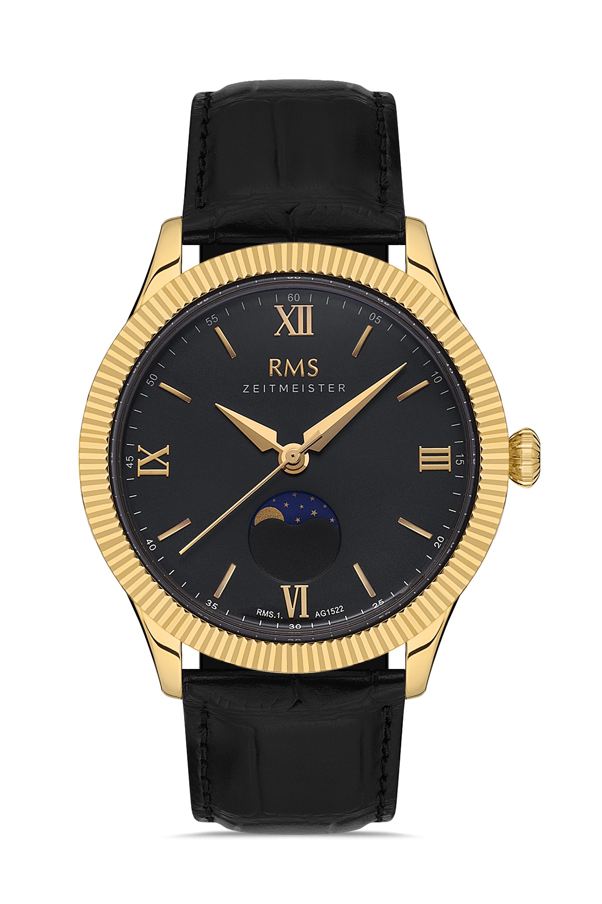 Erkek - Takvi̇mli̇ - Sari - Si̇yah - Doğal Deri̇ Kordon - Si̇yah - 3 Atm - Sertleşti̇ri̇lmi̇ş Mi̇neral Cam - Grand Romanson - 42