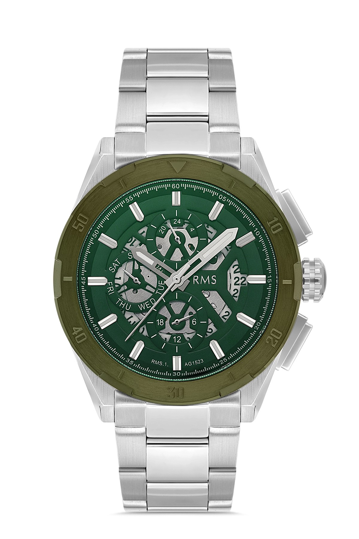 Erkek - Multi̇ Fonksi̇yon - Gümüş Yeşi̇l - Yeşi̇l - Paslanmaz Masi̇f Çeli̇k - 3 Atm - Sertleşti̇ri̇lmi̇ş Mi̇neral Cam - Grand Romanson - 44
