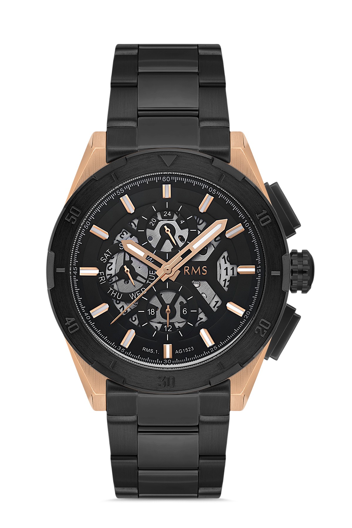 Erkek - Multi̇ Fonksi̇yon - Rose Si̇yah - Si̇yah - Paslanmaz Masi̇f Çeli̇k - 3 Atm - Sertleşti̇ri̇lmi̇ş Mi̇neral Cam - Grand Romanson - 44