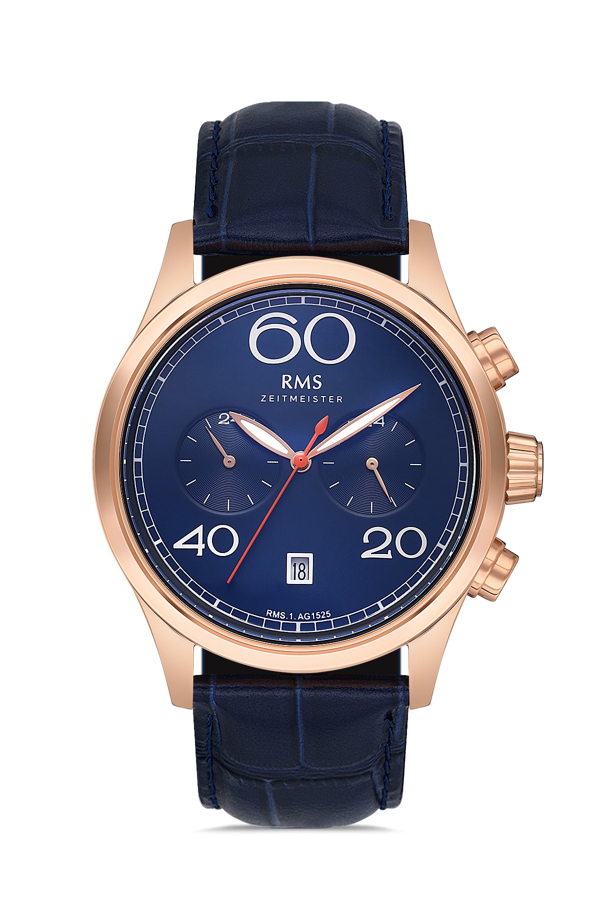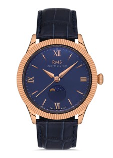 Erkek - Multi̇ Fonksi̇yon - Rose - Mavi̇ - Doğal Deri̇ Kordon - Mavi̇ - 3 Atm - Sertleşti̇ri̇lmi̇ş Mi̇neral Cam - Grand Romanson - 44