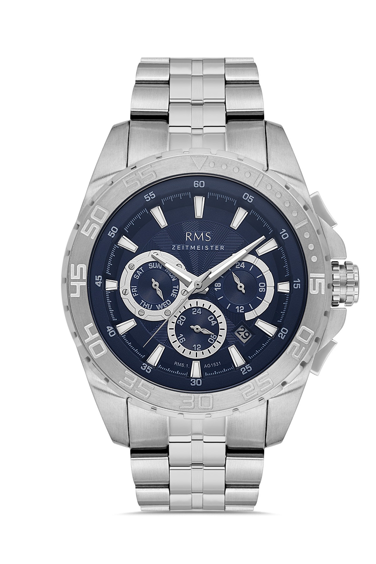 Erkek - Multi̇ Fonksi̇yon - Gümüş - Mavi̇ - Paslanmaz Masi̇f Çeli̇k - 5 Atm - Sertleşti̇ri̇lmi̇ş Mi̇neral Cam - Grand Romanson - 50