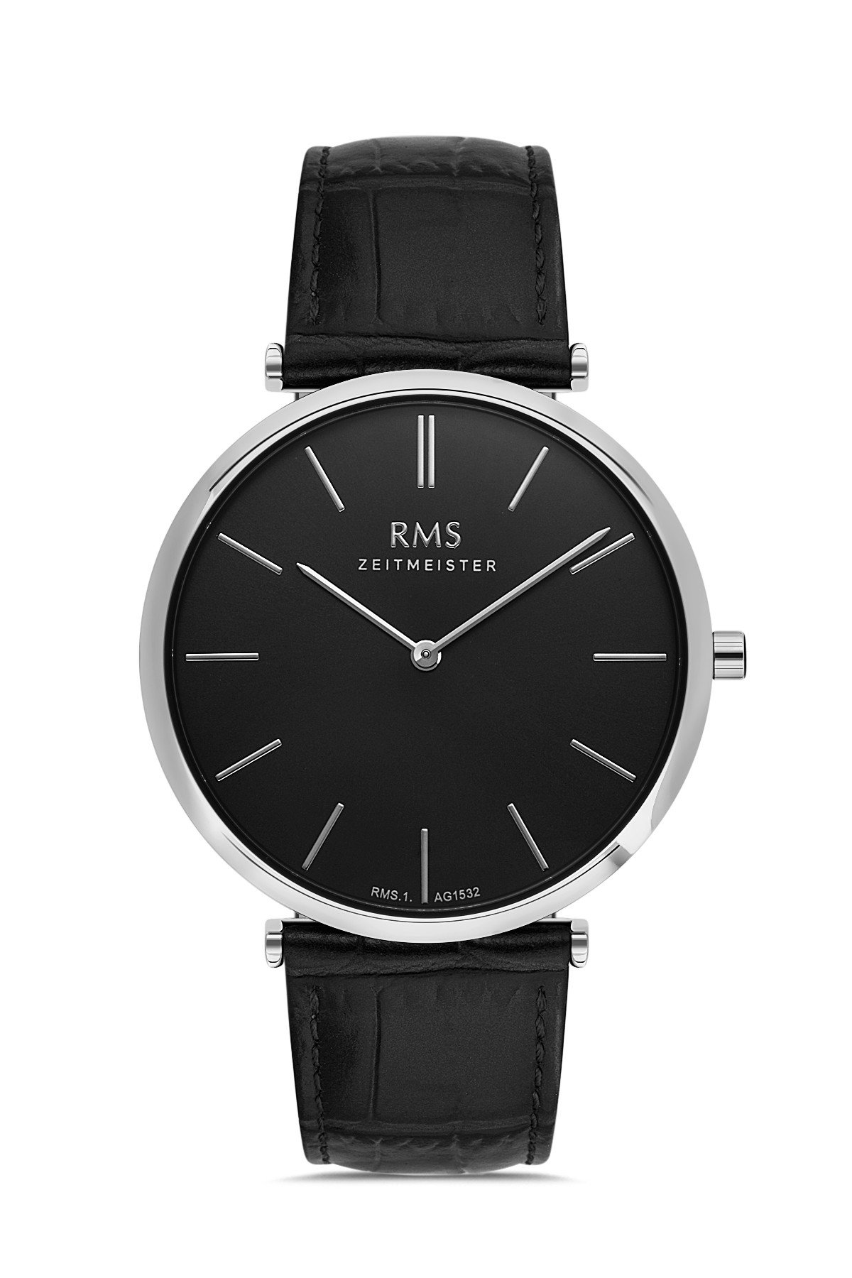 Erkek - Düz - Gümüş - Si̇yah - Doğal Deri̇ Kordon - Si̇yah - 5 Atm - Sertleşti̇ri̇lmi̇ş Mi̇neral Cam - Grand Romanson - 40