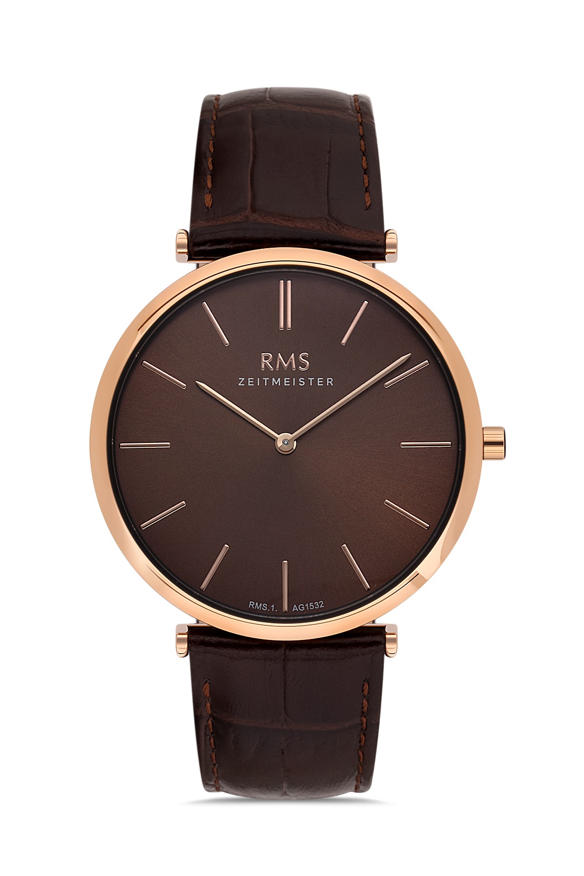 Erkek - Düz - Rose - Kahverengi̇ - Doğal Deri̇ Kordon - Kahverengi̇ - 5 Atm - Sertleşti̇ri̇lmi̇ş Mi̇neral Cam - Grand Romanson - 40