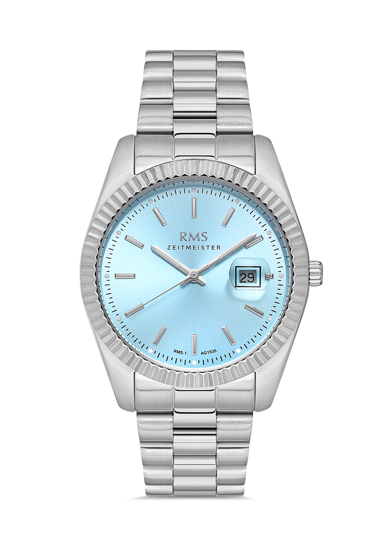 Erkek - Takvi̇mli̇ - Gümüş - Açik Mavi̇ - Paslanmaz Masi̇f Çeli̇k - 3 Atm - Sertleşti̇ri̇lmi̇ş Mi̇neral Cam - Grand Romanson