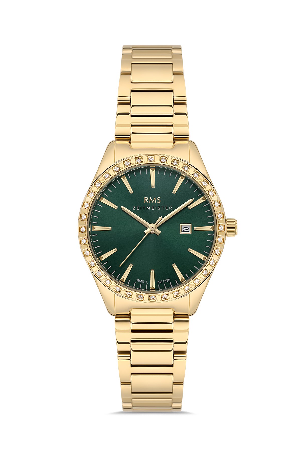 Kadın - Takvi̇mli̇ - Sari - Yeşi̇l - Paslanmaz Masi̇f Çeli̇k - 3 Atm - Sertleşti̇ri̇lmi̇ş Mi̇neral Cam - Grand Romanson - 32