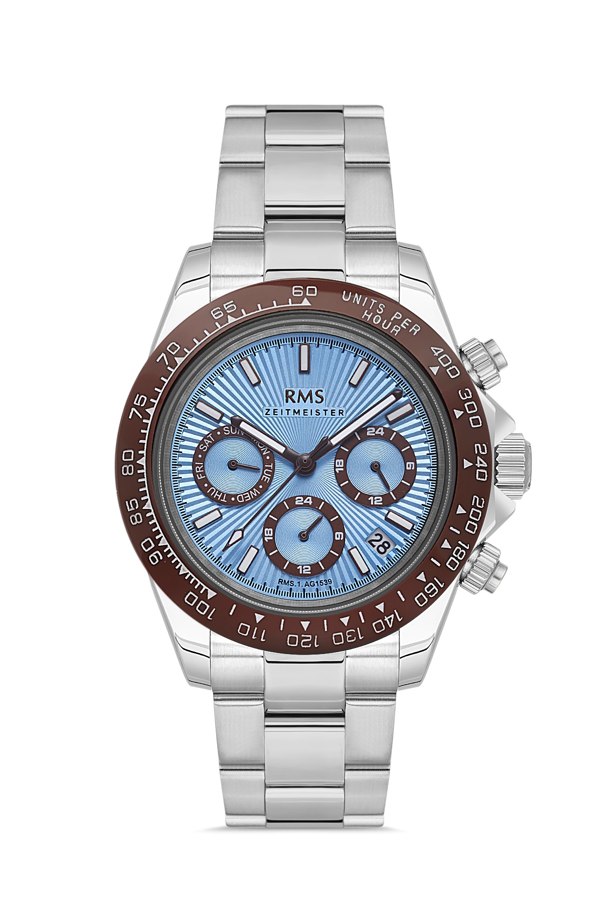Erkek - Multi̇ Fonksi̇yon - Gümüş - Mavi̇ - Paslanmaz Masi̇f Çeli̇k - 3 Atm - Sertleşti̇ri̇lmi̇ş Mi̇neral Cam - Grand Romanson - 41