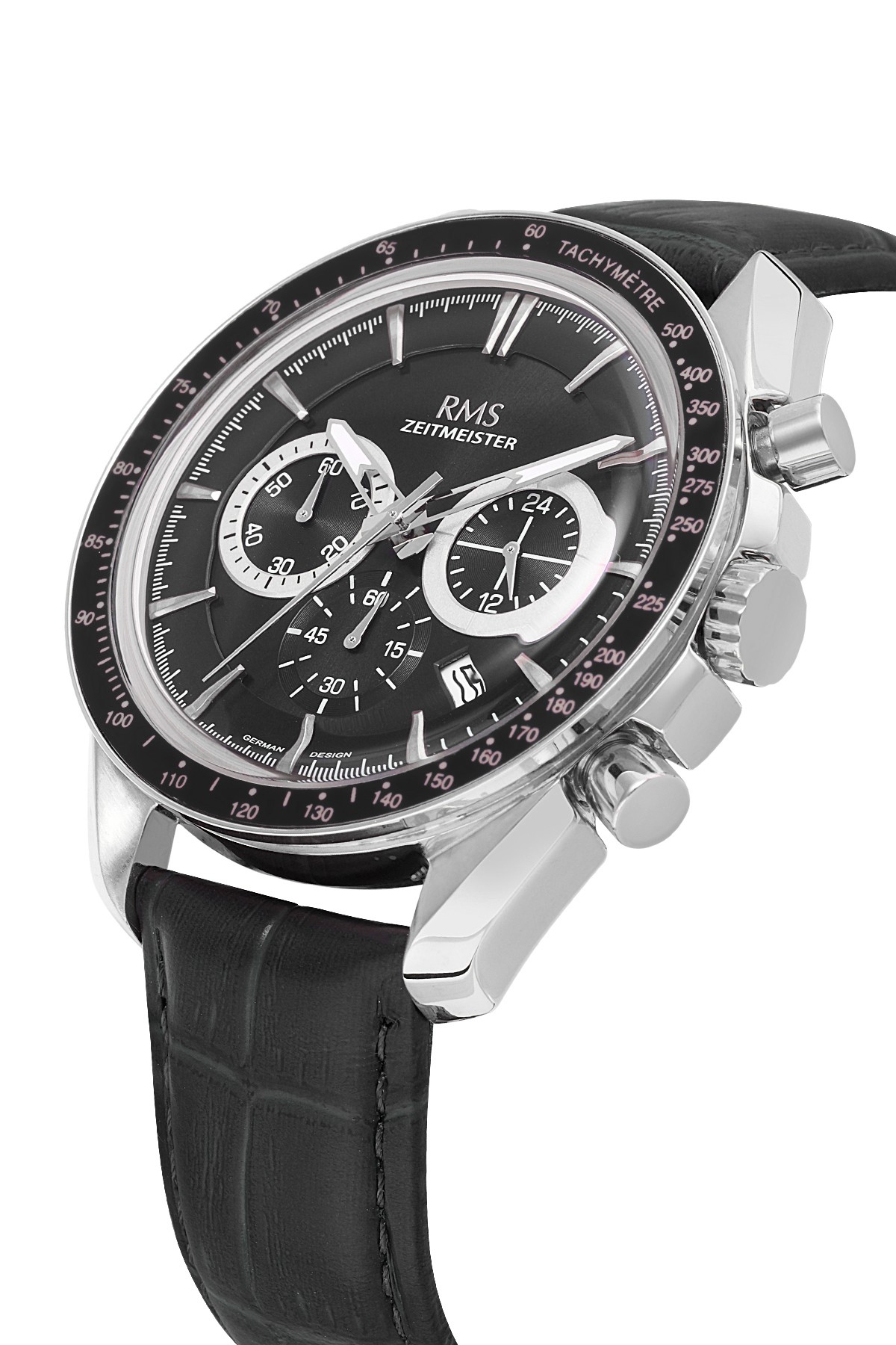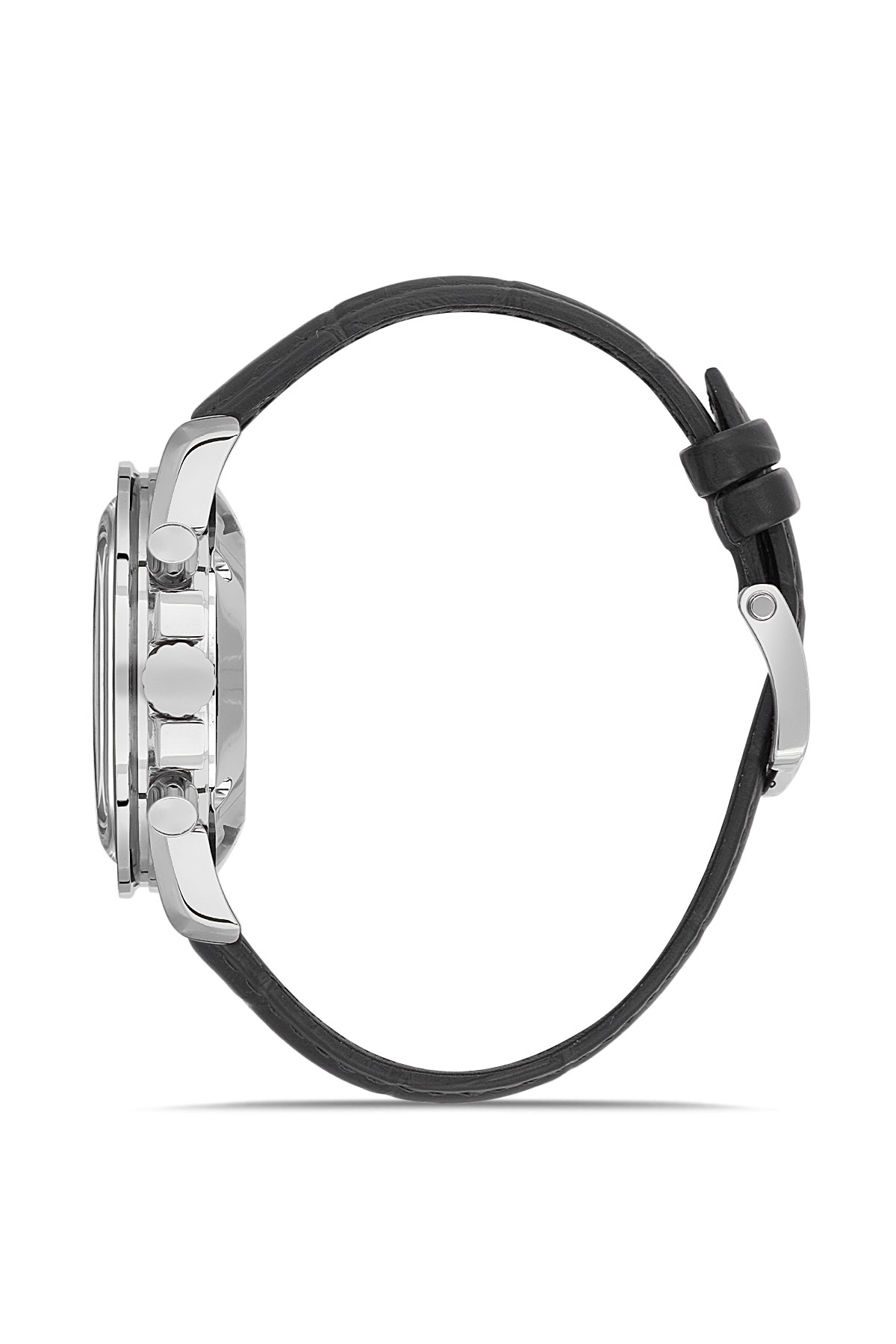 Erkek - Kronometre - Gümüş - Si̇yah - Doğal Deri̇ Kordon - Si̇yah - 5 Atm - Sertleşti̇ri̇lmi̇ş Mi̇neral Cam - Grand Romanson - 45