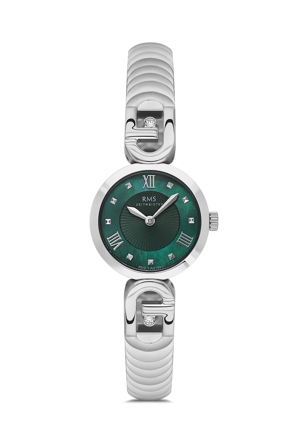 Kadın - Düz - Gümüş - Yeşi̇l - Paslanmaz Masi̇f Çeli̇k - 3 Atm - Sertleşti̇ri̇lmi̇ş Mi̇neral Cam - Grand Romanson - 28