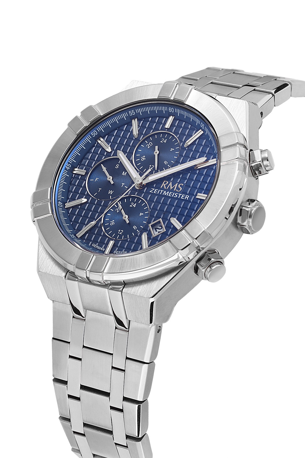 Erkek - Multi̇ Fonksi̇yon - Gümüş - Mavi̇ - Paslanmaz Masi̇f Çeli̇k - 5 Atm - Sertleşti̇ri̇lmi̇ş Mi̇neral Cam - Grand Romanson - 43