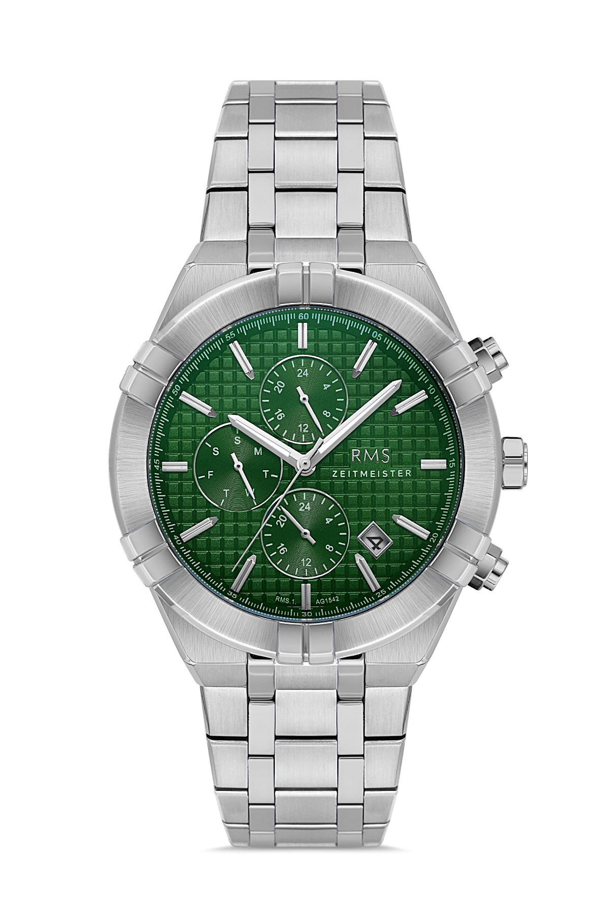 Erkek - Multi̇ Fonksi̇yon - Gümüş - Yeşi̇l - Paslanmaz Masi̇f Çeli̇k - 3 Atm - Sertleşti̇ri̇lmi̇ş Mi̇neral Cam - Grand Romanson - 44
