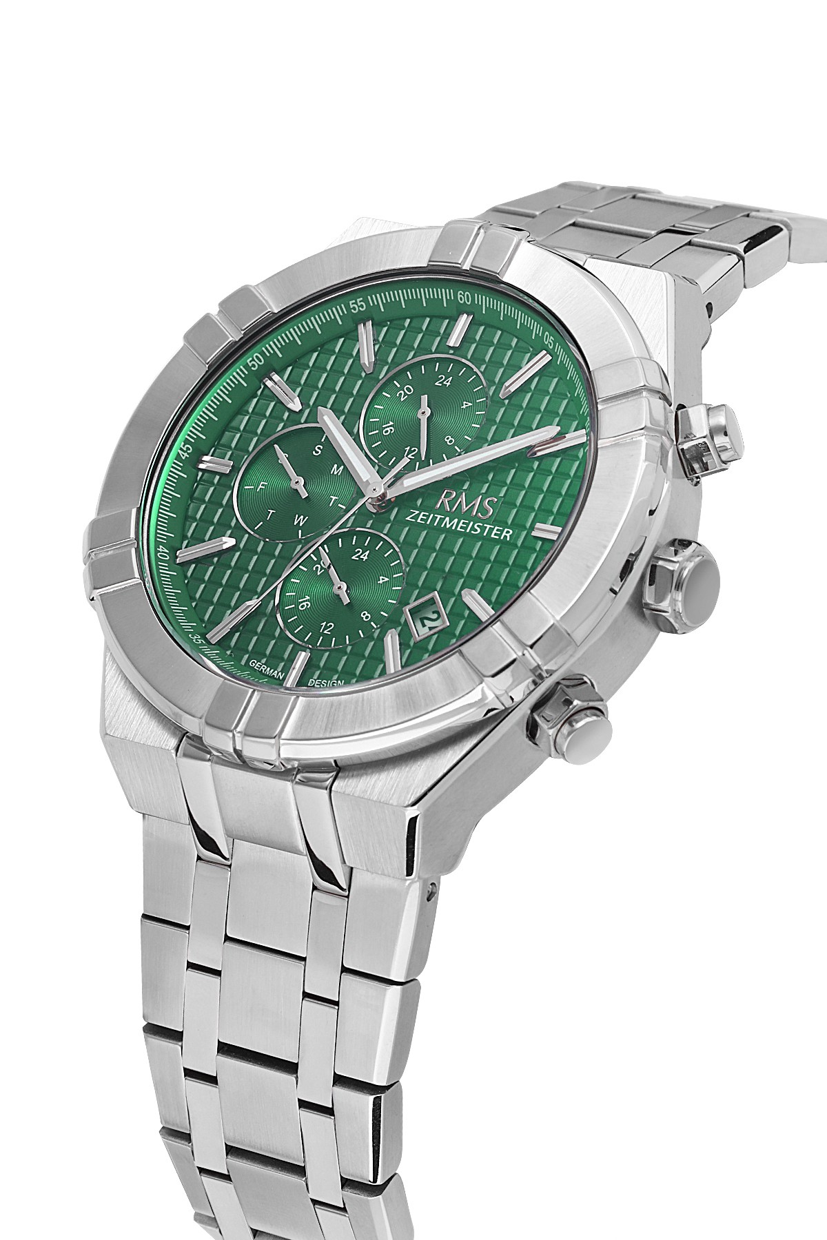 Erkek - Multi̇ Fonksi̇yon - Gümüş - Yeşi̇l - Paslanmaz Masi̇f Çeli̇k - 5 Atm - Sertleşti̇ri̇lmi̇ş Mi̇neral Cam - Grand Romanson - 43