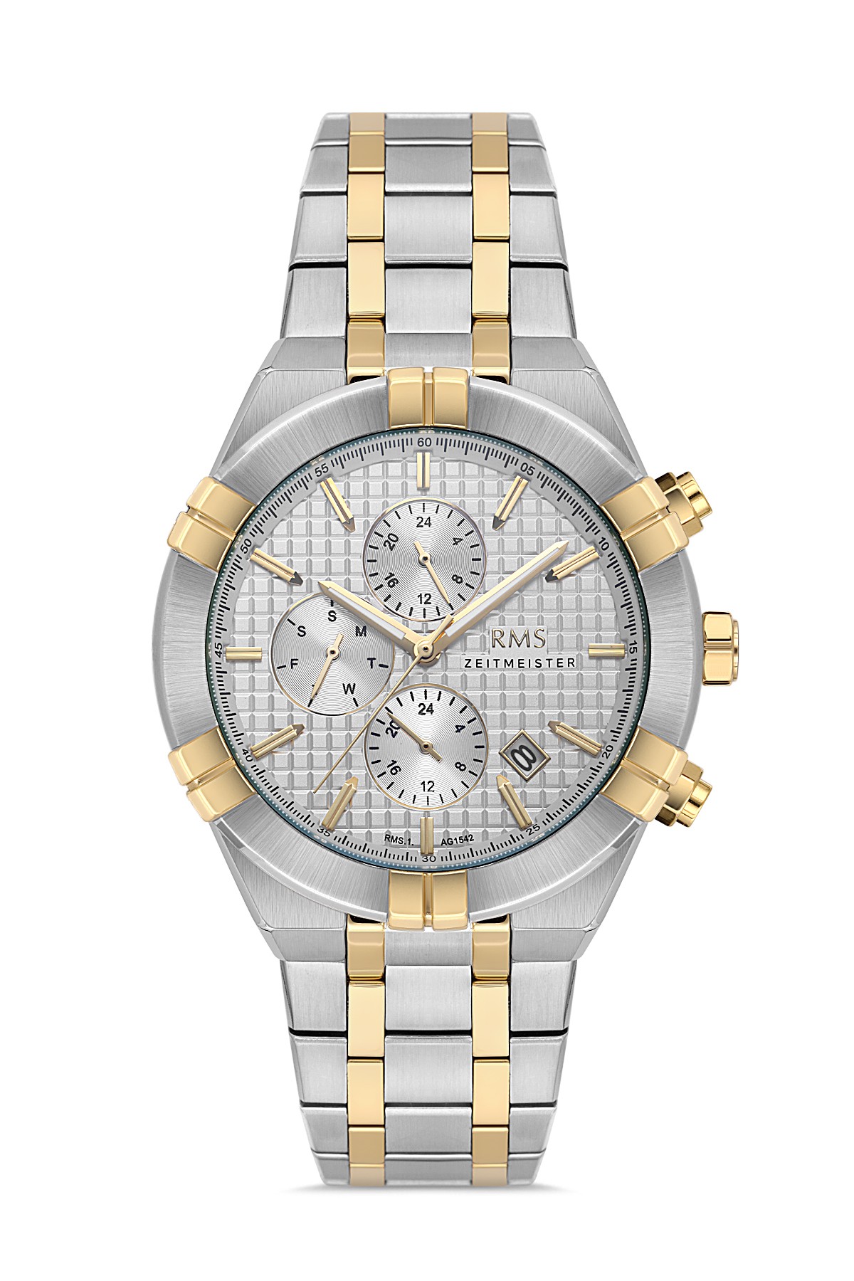Erkek - Multi̇ Fonksi̇yon - Sari Beyaz - Gümüş - Paslanmaz Masi̇f Çeli̇k - 3 Atm - Sertleşti̇ri̇lmi̇ş Mi̇neral Cam - Grand Romanson - 44
