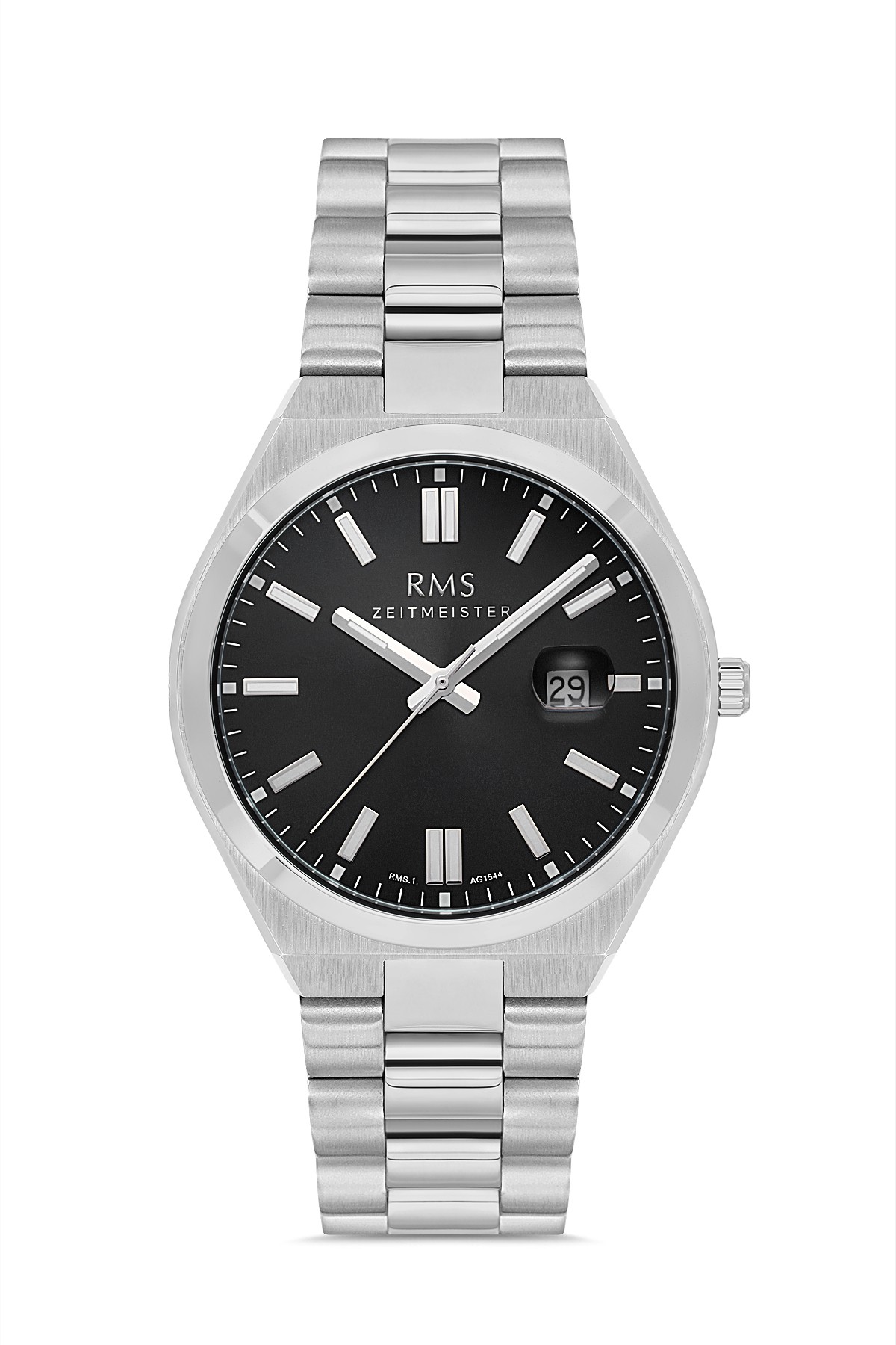 Erkek - Takvi̇mli̇ - Gümüş - Si̇yah - Paslanmaz Masi̇f Çeli̇k - 5 Atm - Sertleşti̇ri̇lmi̇ş Mi̇neral Cam - Grand Romanson - 43
