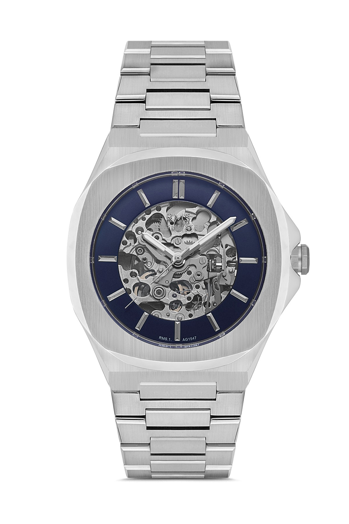 Erkek - Otomati̇k - Gümüş - Mavi̇ - Paslanmaz Masi̇f Çeli̇k - 5 Atm - Sertleşti̇ri̇lmi̇ş Mi̇neral Cam - Grand Romanson - 45*43