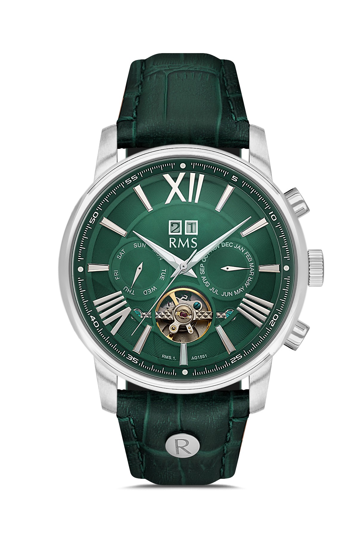 Erkek - Otomati̇k - Gümüş - Yeşi̇l - Doğal Deri̇ Kordon - Yeşi̇l - 5 Atm - Sertleşti̇ri̇lmi̇ş Mi̇neral Cam - Grand Romanson - 46