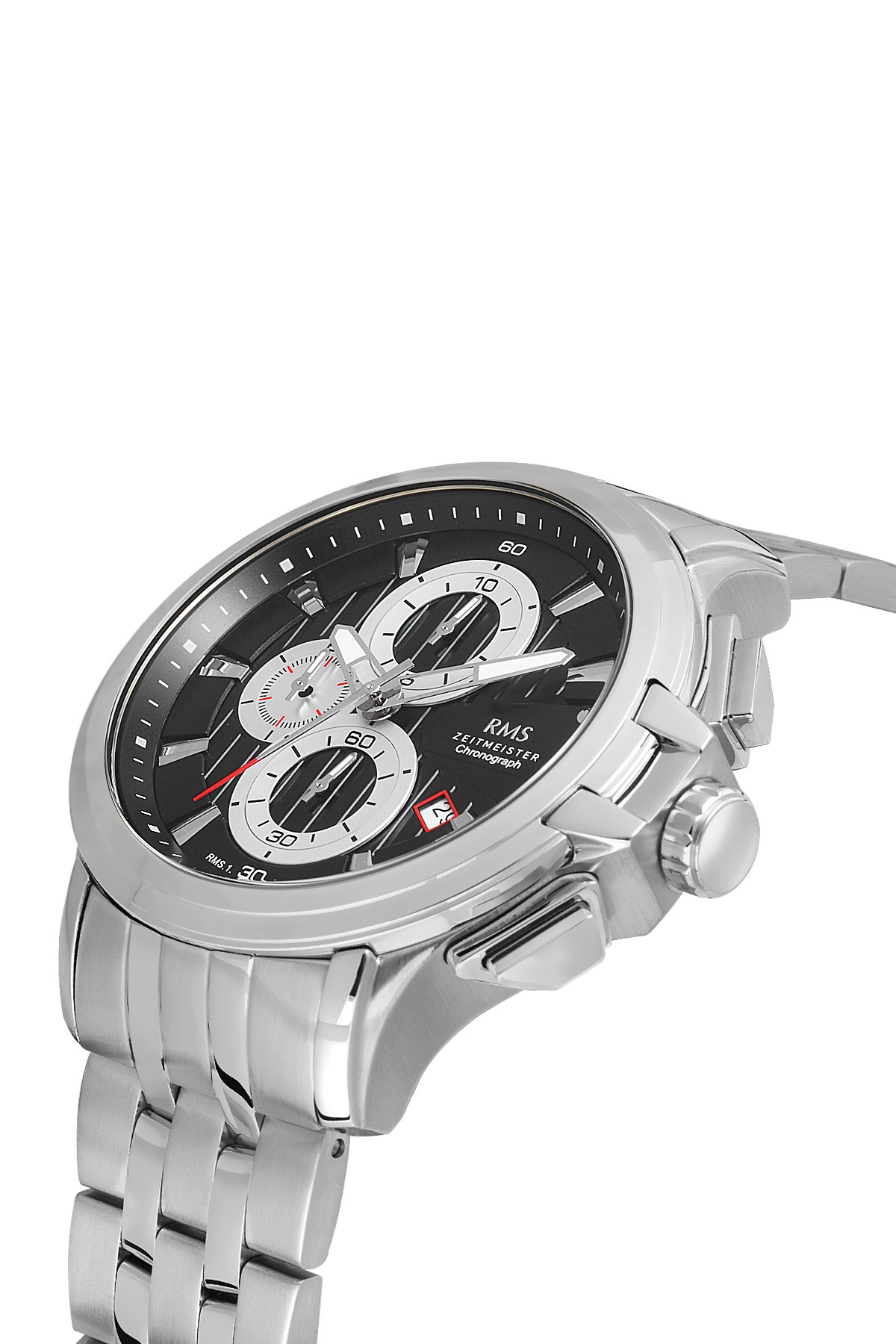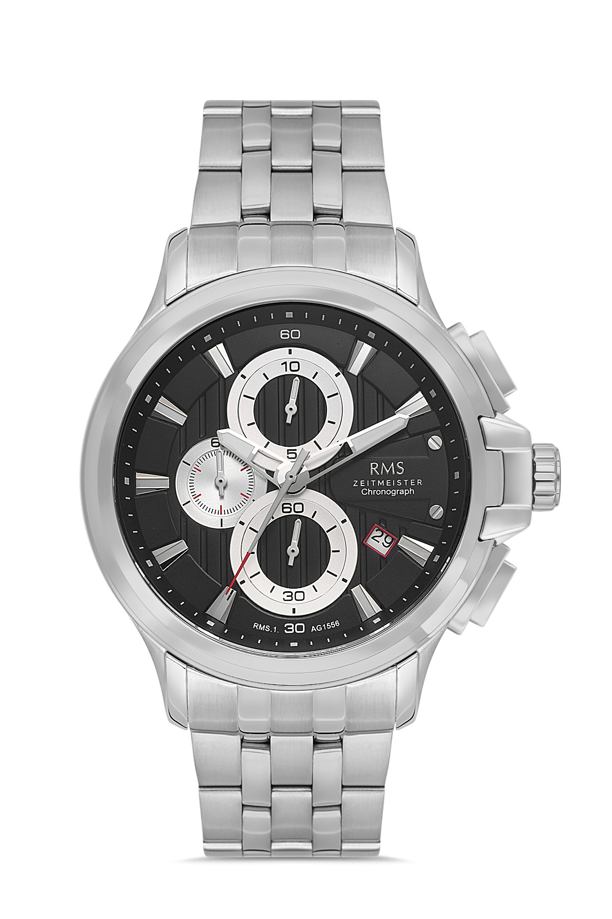 Erkek - Kronometre - Gümüş - Si̇yah - Paslanmaz Masi̇f Çeli̇k - 5 Atm - Sertleşti̇ri̇lmi̇ş Mi̇neral Cam - Grand Romanson - 46