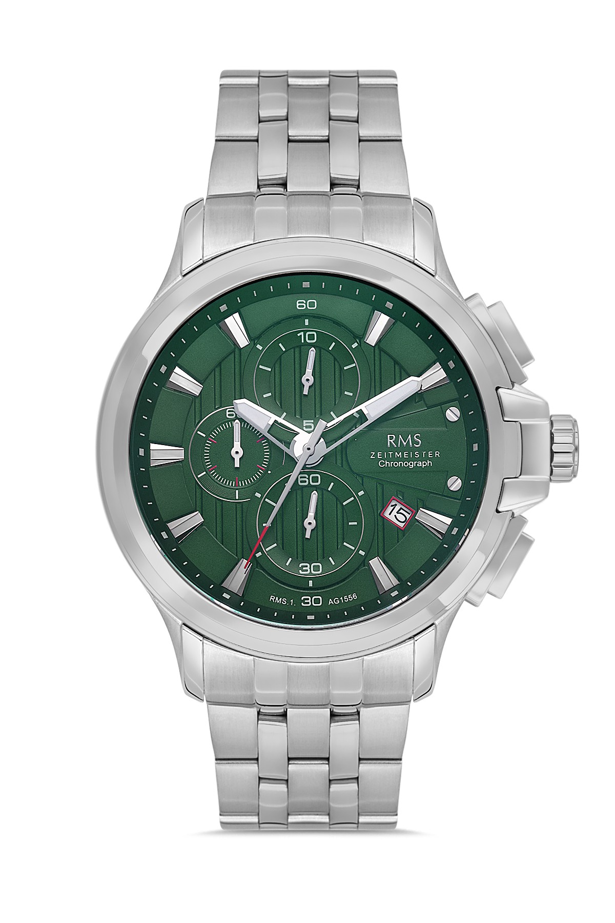 Erkek - Kronometre - Gümüş - Yeşi̇l - Paslanmaz Masi̇f Çeli̇k - 5 Atm - Sertleşti̇ri̇lmi̇ş Mi̇neral Cam - Grand Romanson - 46
