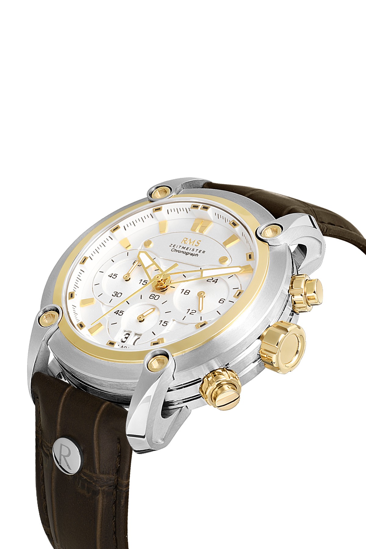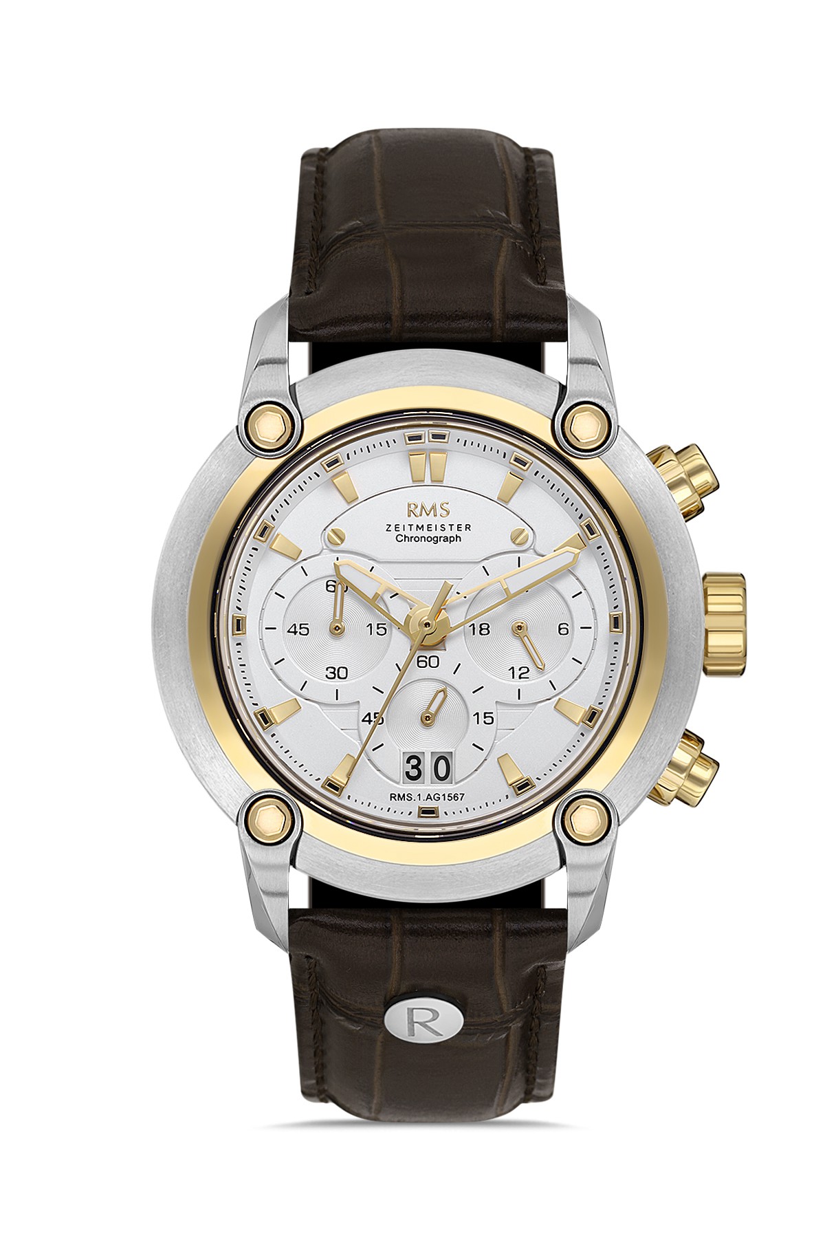 Erkek - Kronometre - Sari Beyaz - Gümüş - Doğal Deri̇ Kordon - Si̇yah - 5 Atm - Sertleşti̇ri̇lmi̇ş Mi̇neral Cam - Grand Romanson - 45