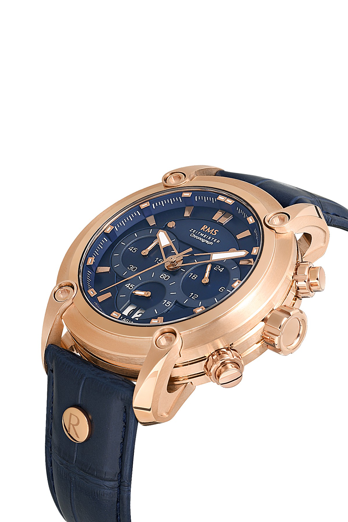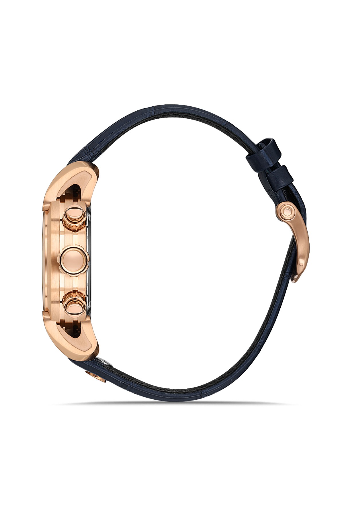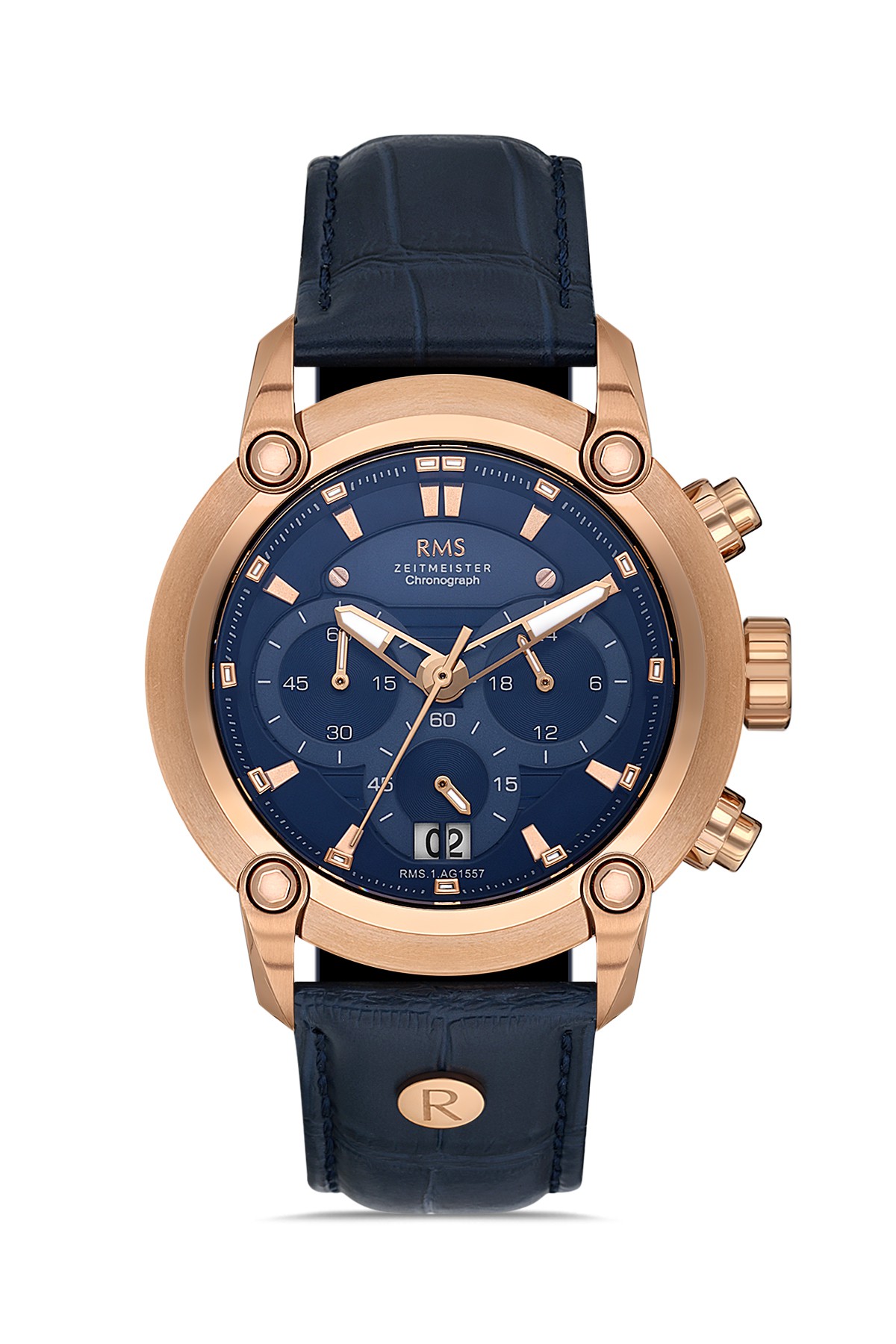 Erkek - Kronometre - Rose - Mavi̇ - Doğal Deri̇ Kordon - Mavi̇ - 5 Atm - Sertleşti̇ri̇lmi̇ş Mi̇neral Cam - Grand Romanson - 45