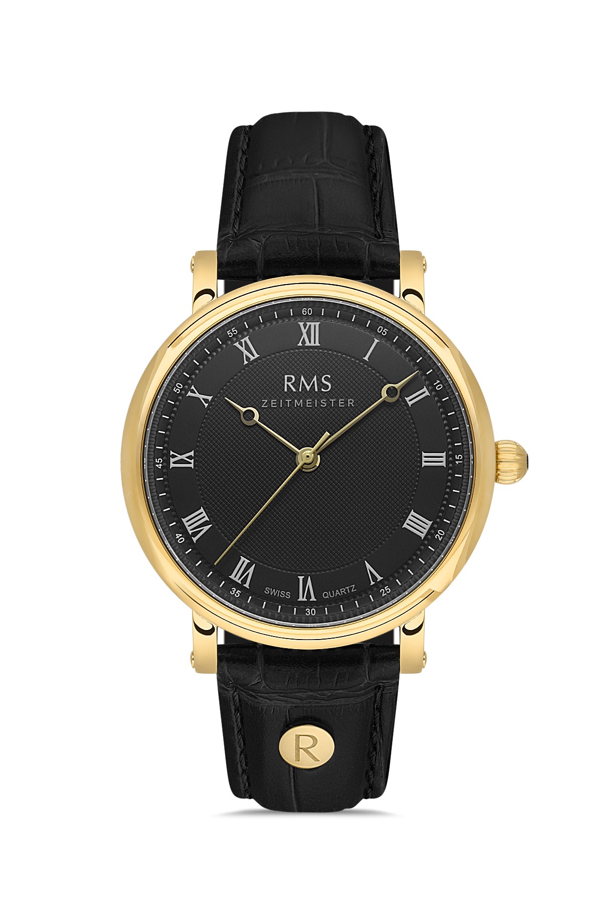 Erkek - Düz - Sari - Si̇yah - Doğal Deri̇ Kordon - Si̇yah - 3 Atm - Sertleşti̇ri̇lmi̇ş Mi̇neral Cam - Grand Romanson - 41