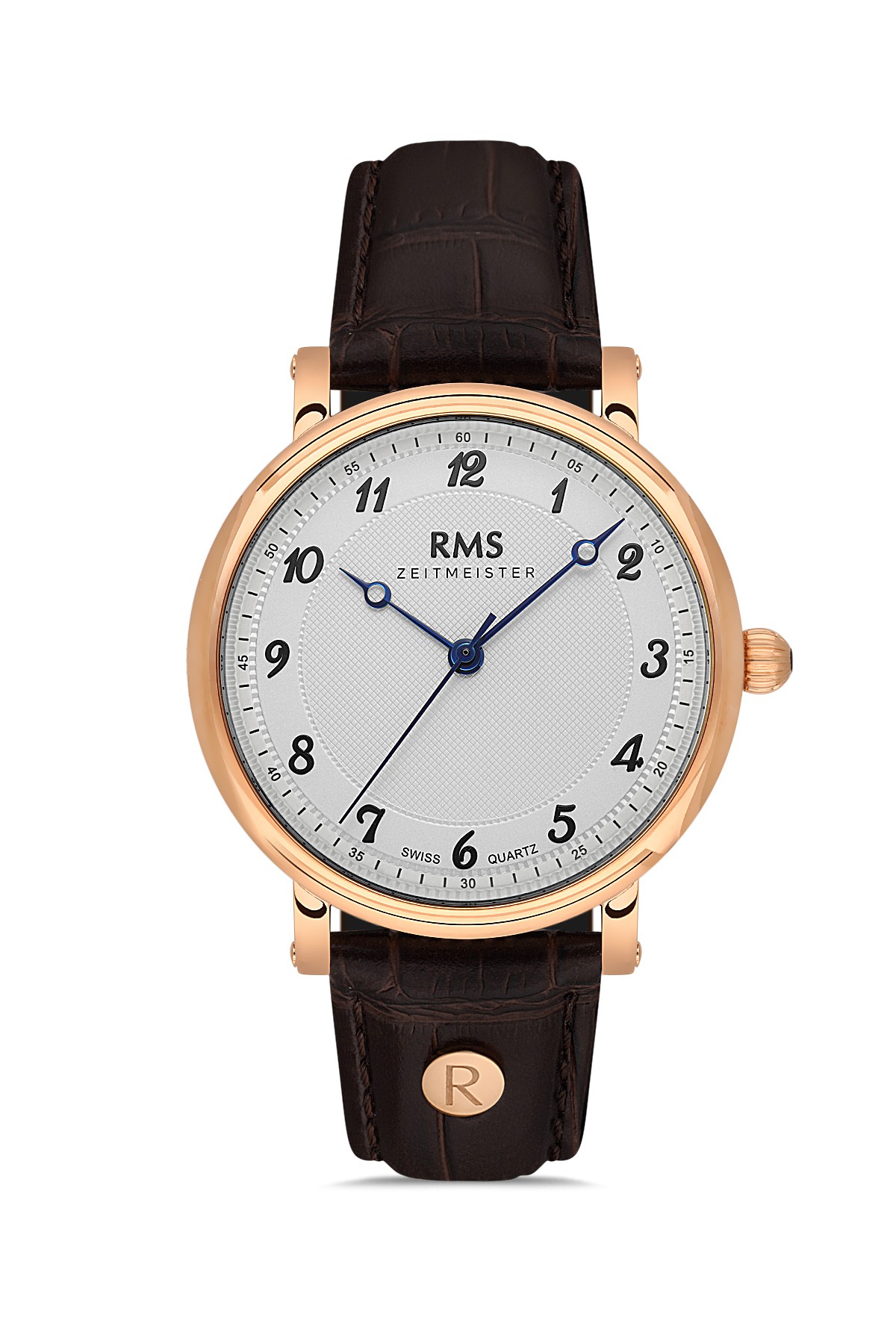 Erkek - Düz - Rose - Gümüş - Doğal Deri̇ Kordon - Kahverengi̇ - 3 Atm - Sertleşti̇ri̇lmi̇ş Mi̇neral Cam - Grand Romanson - 41