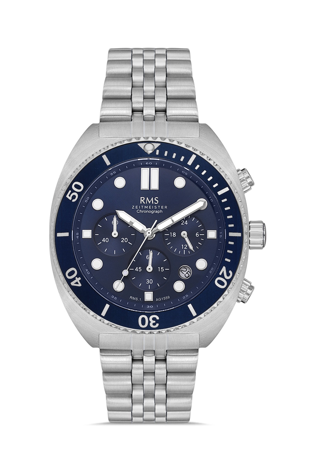 Erkek - Kronometre - Gümüş - Mavi̇ - Paslanmaz Masi̇f Çeli̇k - 3 Atm - Sertleşti̇ri̇lmi̇ş Mi̇neral Cam - Grand Romanson - 47