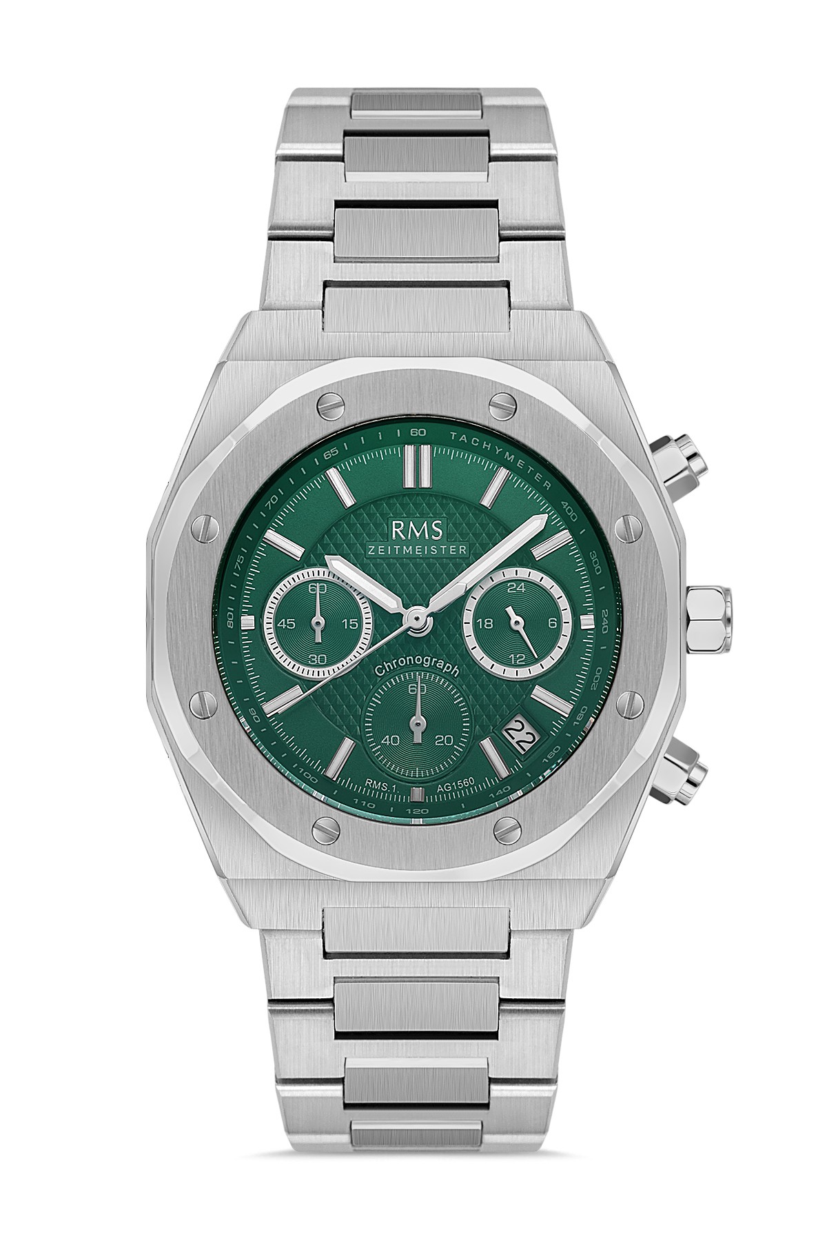 Erkek - Kronometre - Gümüş - Yeşi̇l - Paslanmaz Masi̇f Çeli̇k - 3 Atm - Sertleşti̇ri̇lmi̇ş Mi̇neral Cam - Grand Romanson - 43