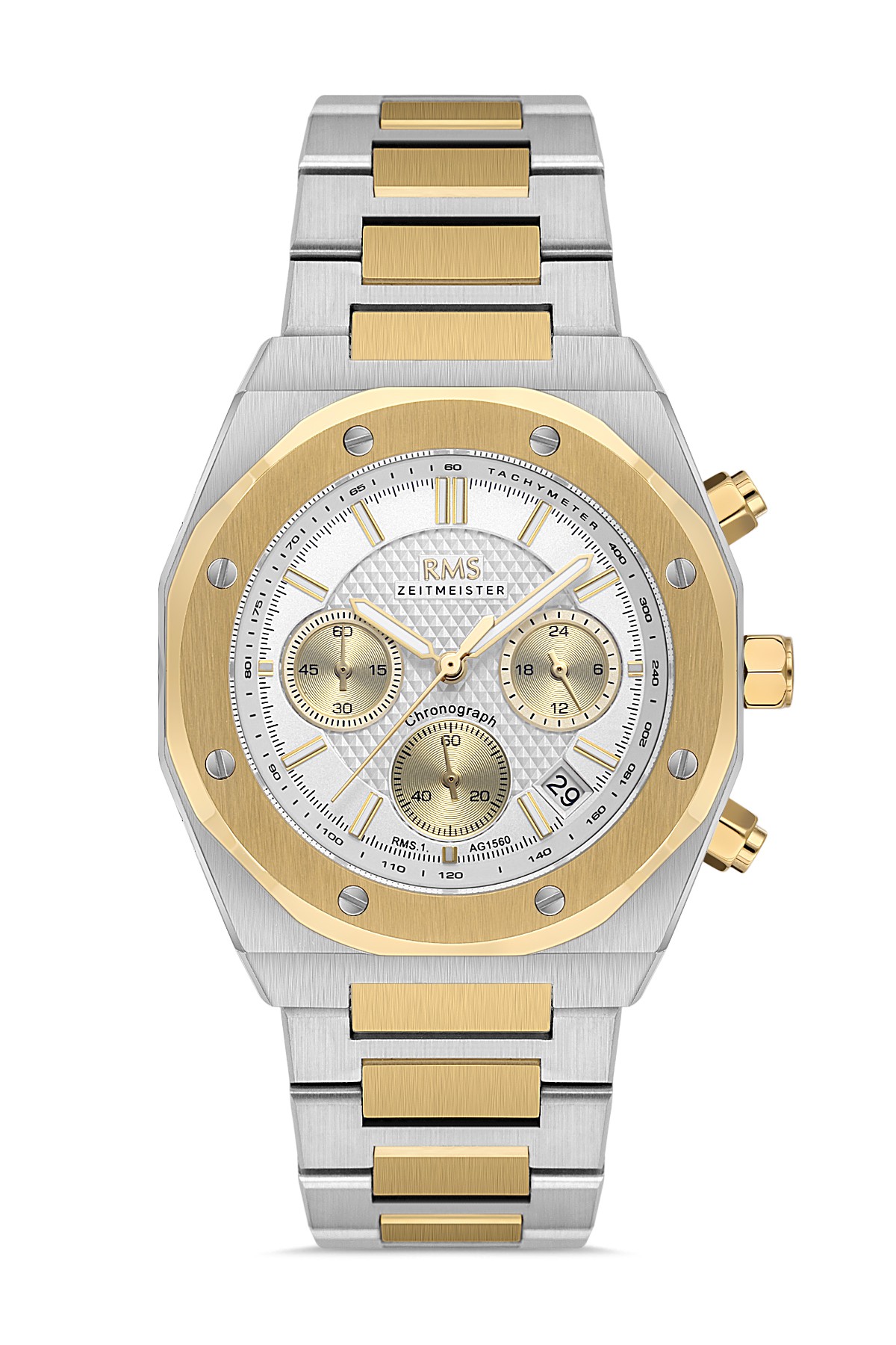 Erkek - Kronometre - Sari Beyaz - Gümüş - Paslanmaz Masi̇f Çeli̇k - 3 Atm - Sertleşti̇ri̇lmi̇ş Mi̇neral Cam - Grand Romanson - 43