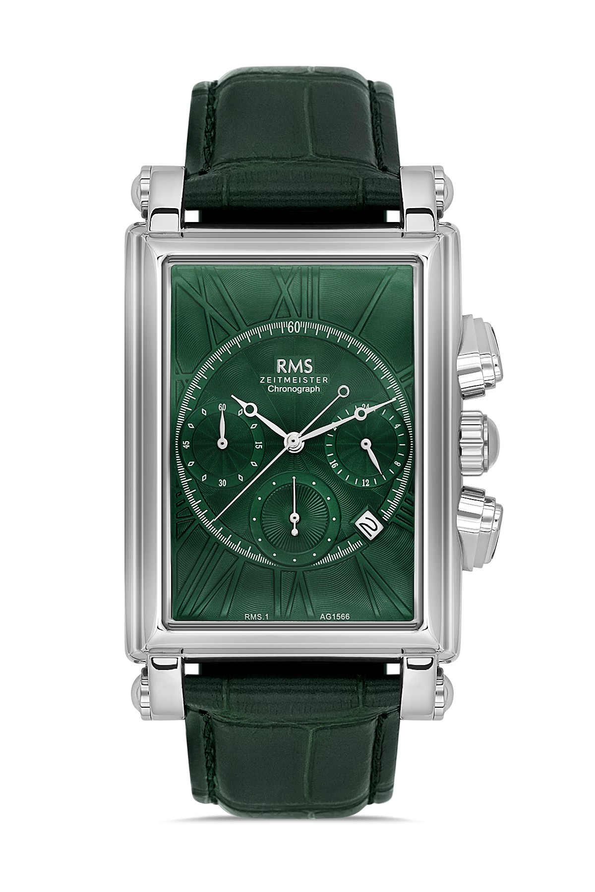 Erkek - Kronometre - Gümüş - Yeşi̇l - Doğal Deri̇ Kordon - Yeşi̇l - 3 Atm - Sertleşti̇ri̇lmi̇ş Mi̇neral Cam - Grand Romanson - 35*47