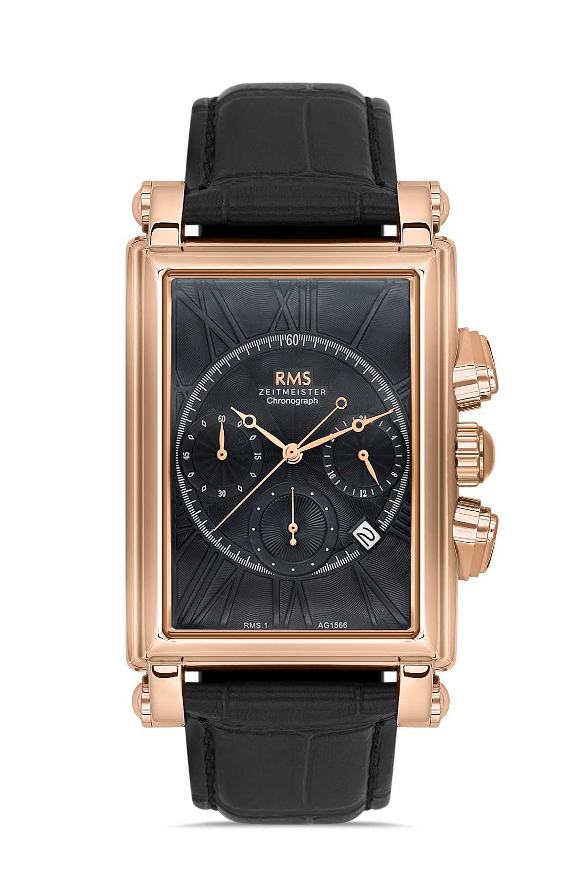 Erkek - Kronometre - Rose - Si̇yah - Doğal Deri̇ Kordon - Si̇yah - 3 Atm - Sertleşti̇ri̇lmi̇ş Mi̇neral Cam - Grand Romanson - 35*47