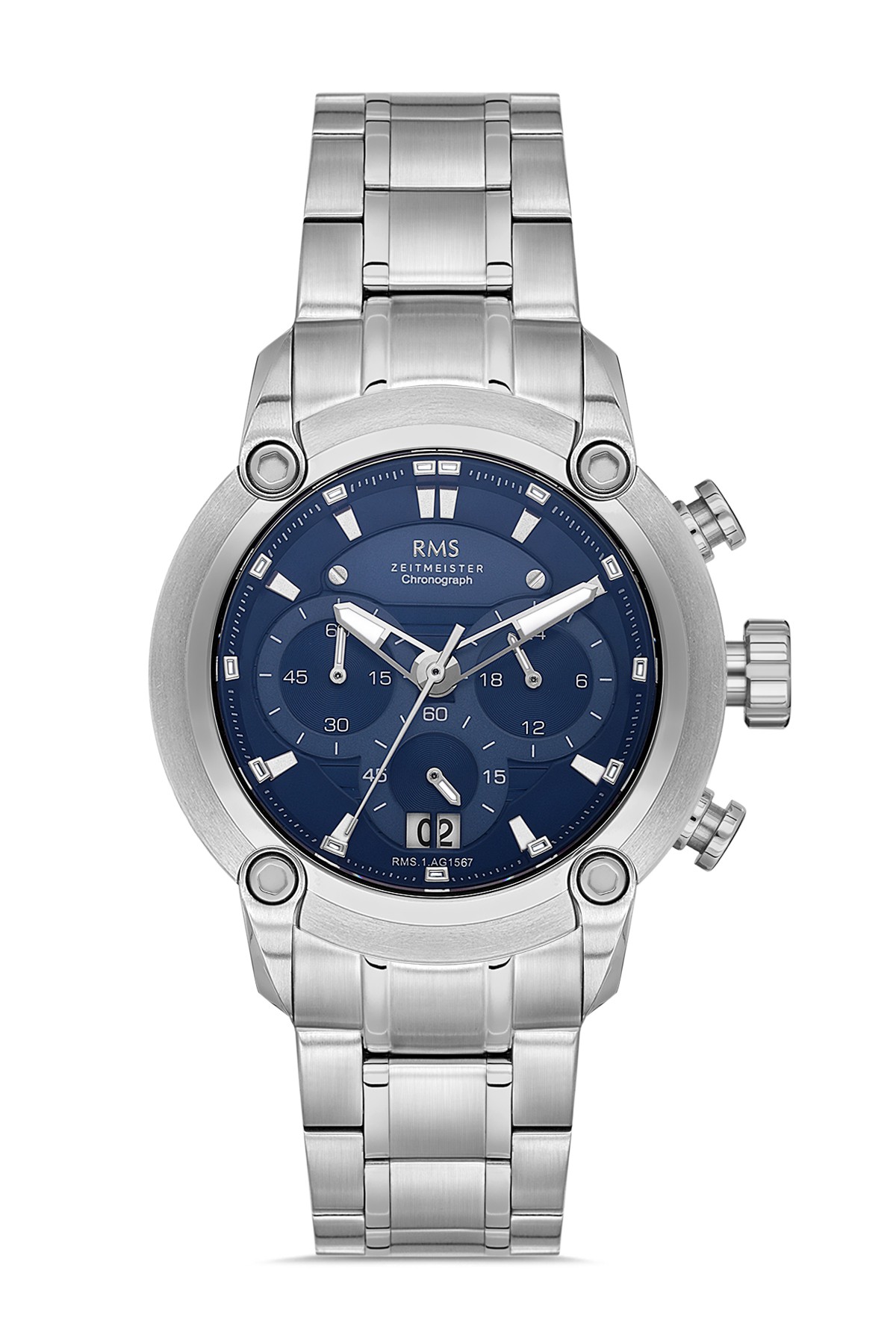 Erkek - Kronometre - Gümüş - Mavi̇ - Paslanmaz Masi̇f Çeli̇k - 5 Atm - Sertleşti̇ri̇lmi̇ş Mi̇neral Cam - Grand Romanson - 44