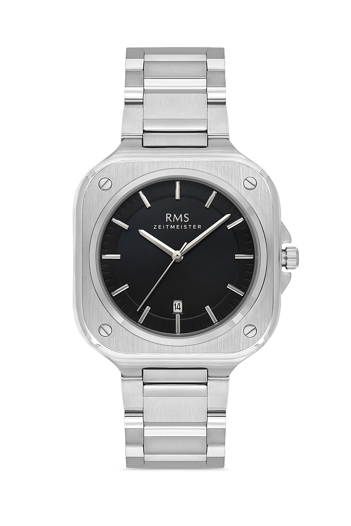 Erkek - Takvi̇mli̇ - Gümüş - Si̇yah - Paslanmaz Masi̇f Çeli̇k - 5 Atm - Sertleşti̇ri̇lmi̇ş Mi̇neral Cam - Grand Romanson - 40*40