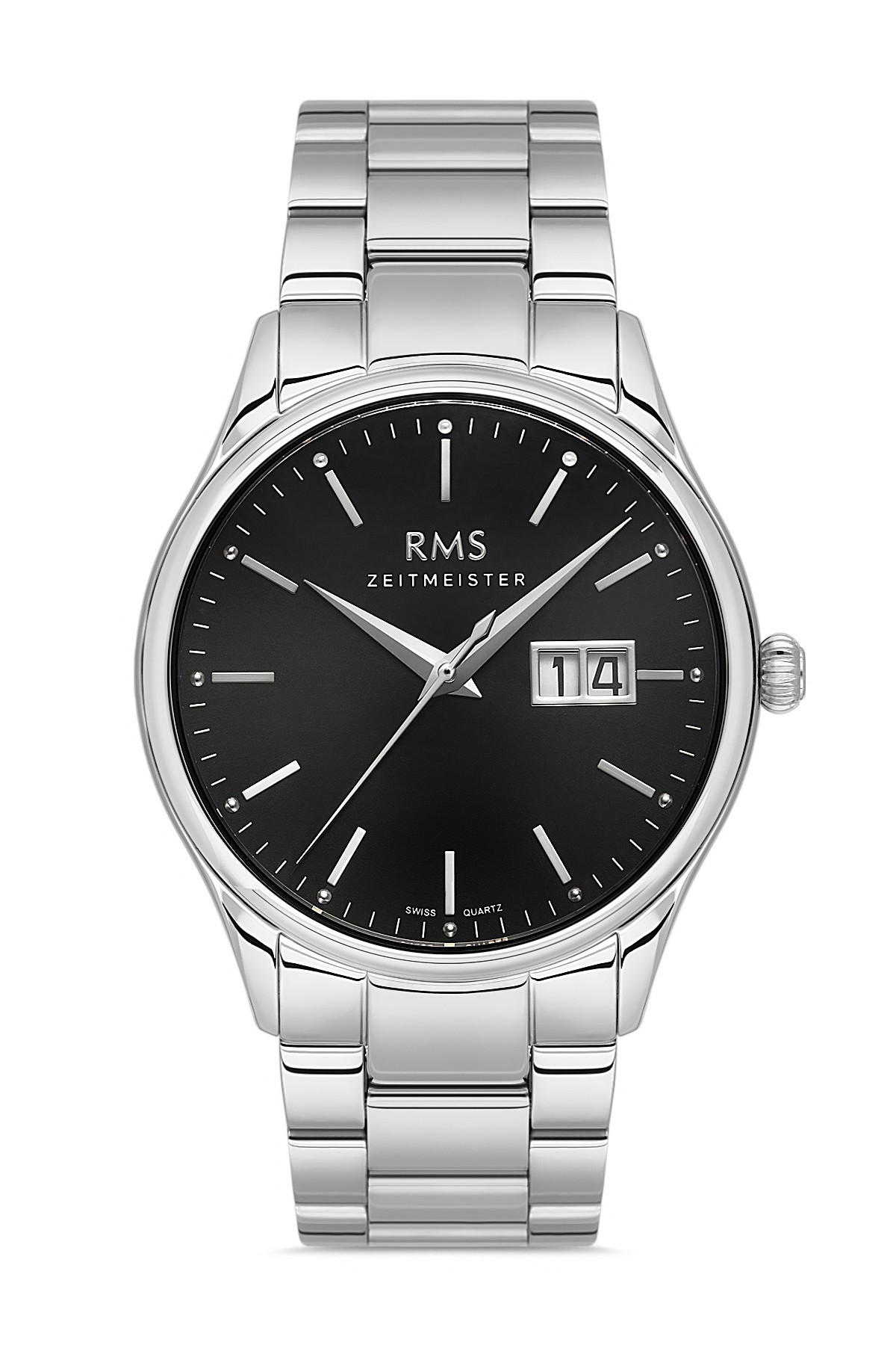 Erkek - Takvi̇mli̇ - Gümüş - Si̇yah - Paslanmaz Masi̇f Çeli̇k - 5 Atm - Sertleşti̇ri̇lmi̇ş Mi̇neral Cam - Grand Romanson - 41