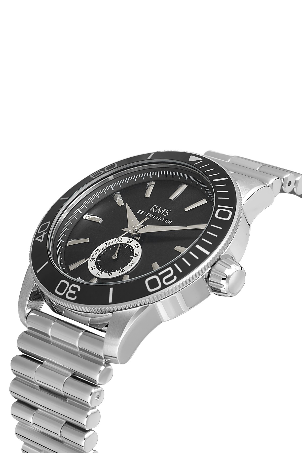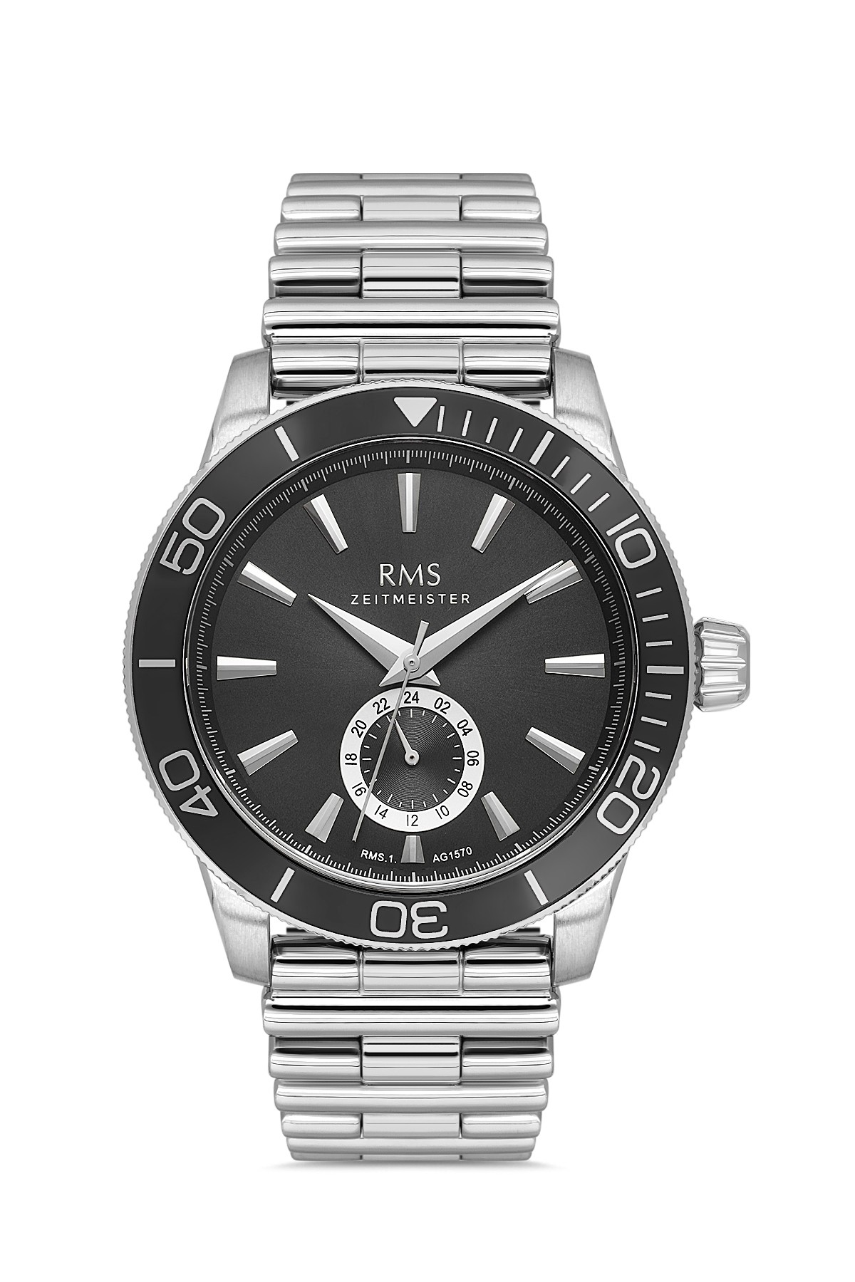 Erkek - Alttan Sani̇ye - Gümüş - Si̇yah - Paslanmaz Masi̇f Çeli̇k - 5 Atm - Sertleşti̇ri̇lmi̇ş Mi̇neral Cam - Grand Romanson - 44