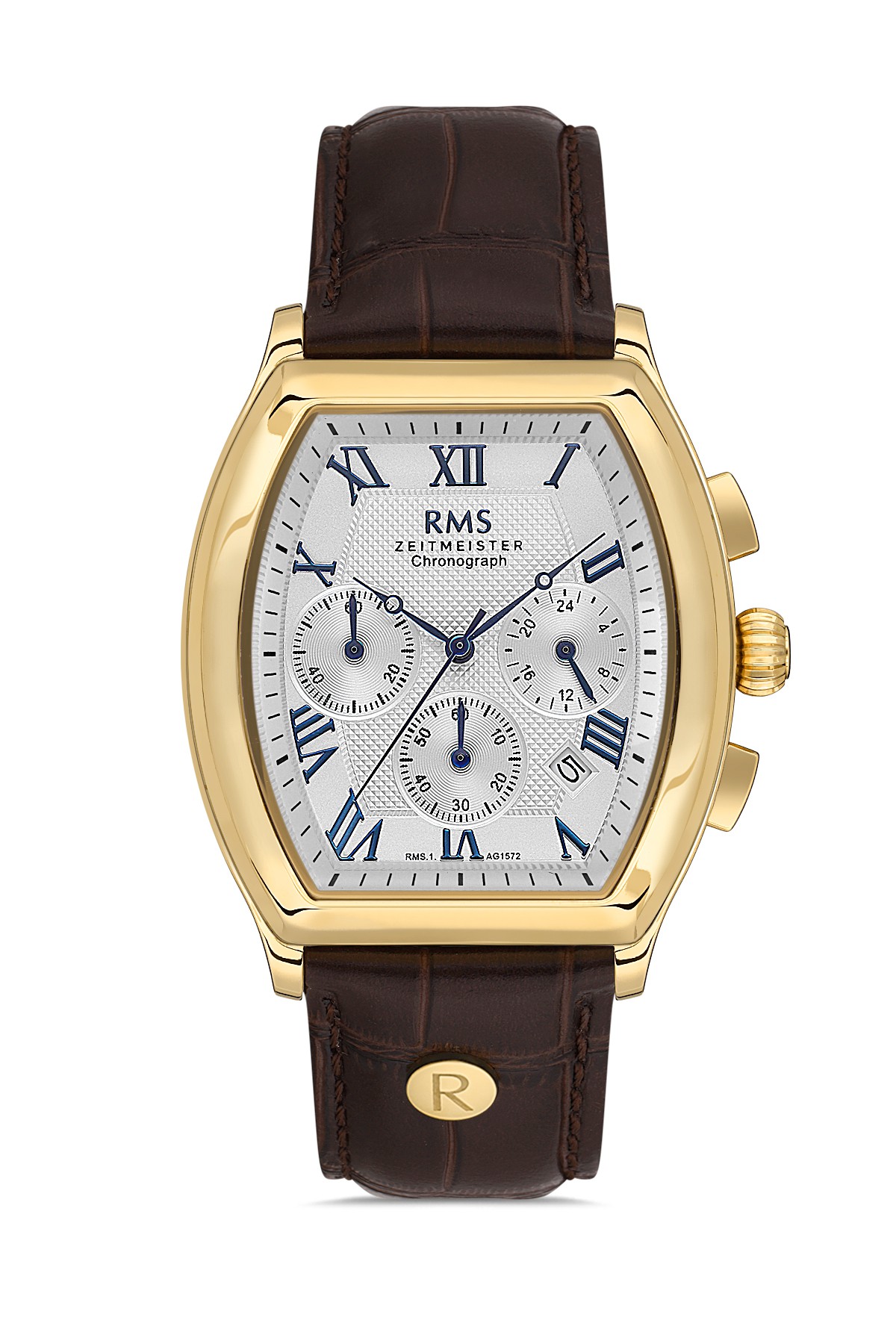 Erkek - Kronometre - Sari - Gümüş - Doğal Deri̇ Kordon - Kahverengi̇ - 3 Atm - Sertleşti̇ri̇lmi̇ş Mi̇neral Cam - Grand Romanson - 40*42
