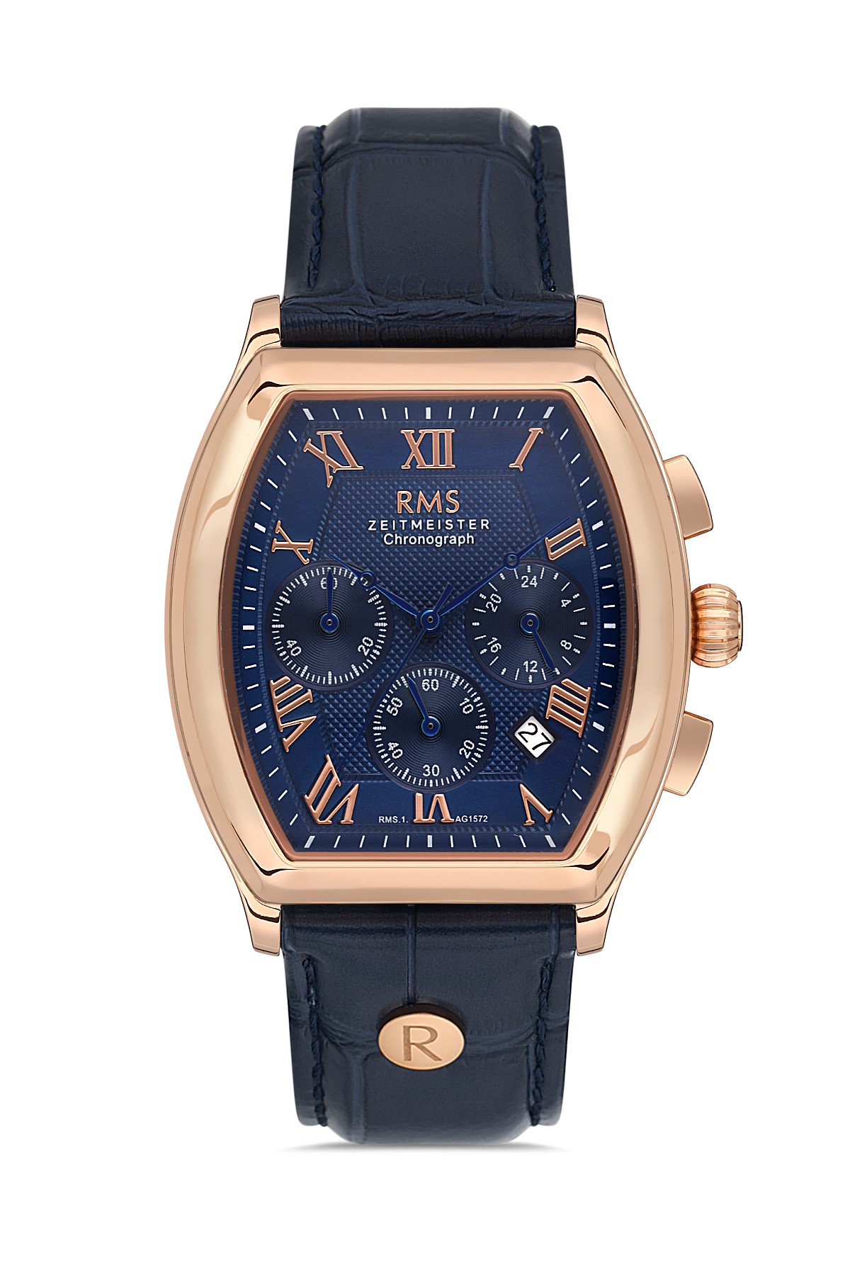 Erkek - Kronometre - Rose - Mavi̇ - Doğal Deri̇ Kordon - Mavi̇ - 3 Atm - Sertleşti̇ri̇lmi̇ş Mi̇neral Cam - Grand Romanson - 40*42
