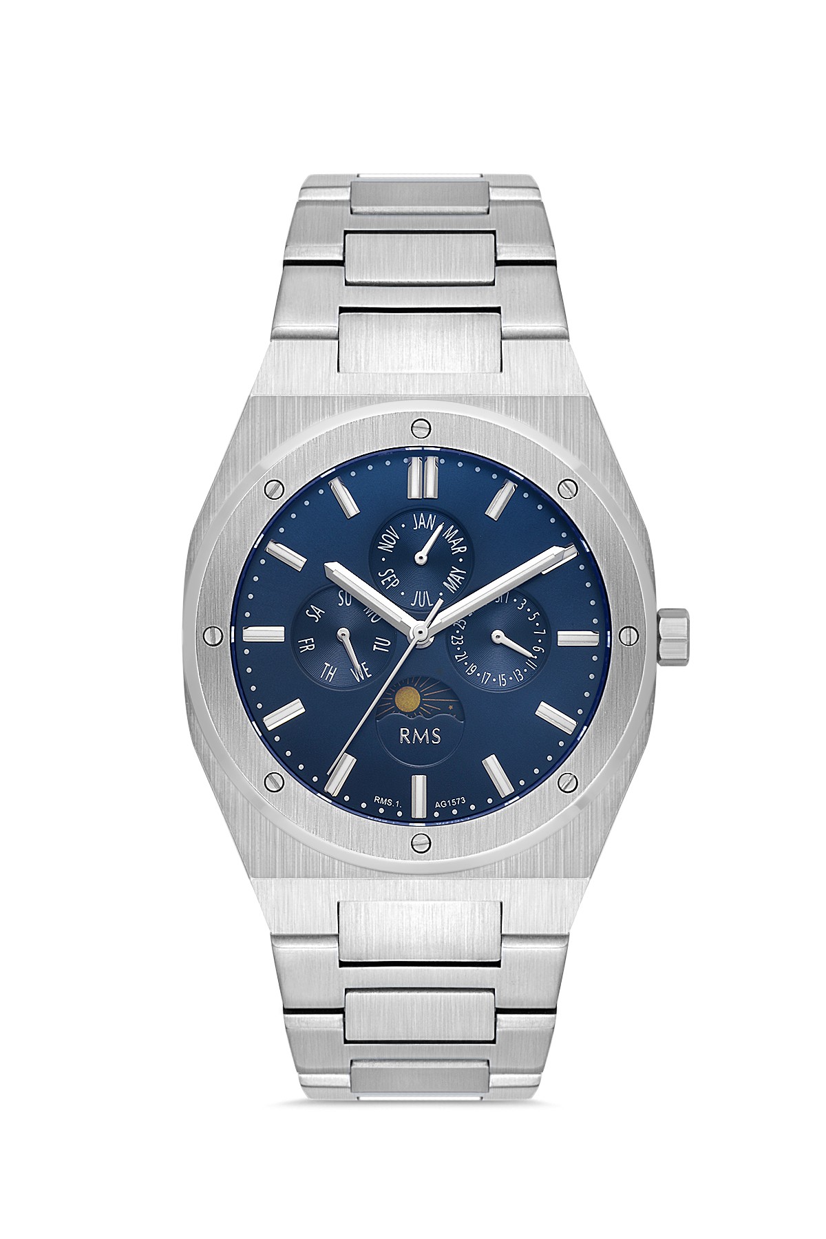Erkek - Multi̇ Fonksi̇yon - Gümüş - Mavi̇ - Paslanmaz Masi̇f Çeli̇k - 3 Atm - Sertleşti̇ri̇lmi̇ş Mi̇neral Cam - Grand Romanson - 43