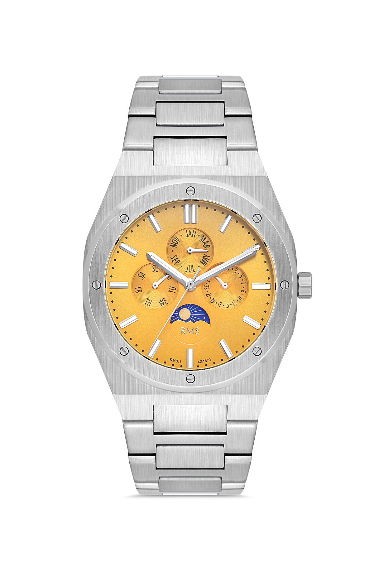 Erkek - Multi̇ Fonksi̇yon - Gümüş - Turuncu - Paslanmaz Masi̇f Çeli̇k - 3 Atm - Sertleşti̇ri̇lmi̇ş Mi̇neral Cam - Grand Romanson - 43