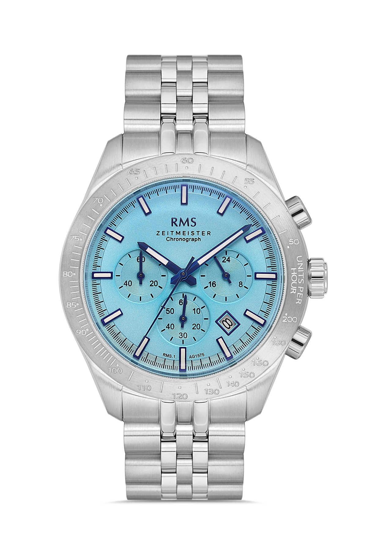 Erkek - Kronometre - Gümüş - Açik Mavi̇ - Paslanmaz Masi̇f Çeli̇k - 3 Atm - Sertleşti̇ri̇lmi̇ş Mi̇neral Cam - Grand Romanson - 45