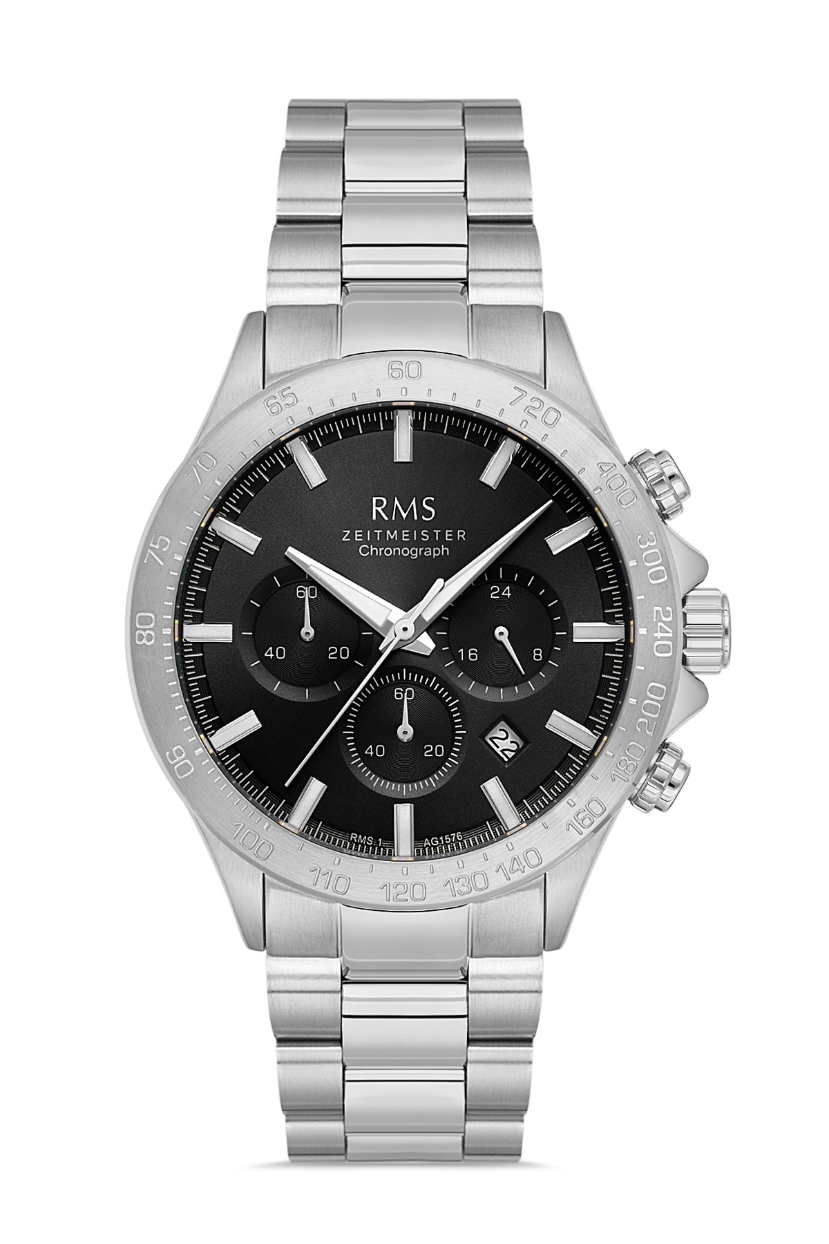 Erkek - Kronometre - Gümüş - Si̇yah - Paslanmaz Masi̇f Çeli̇k - 3 Atm - Sertleşti̇ri̇lmi̇ş Mi̇neral Cam - Grand Romanson - 44