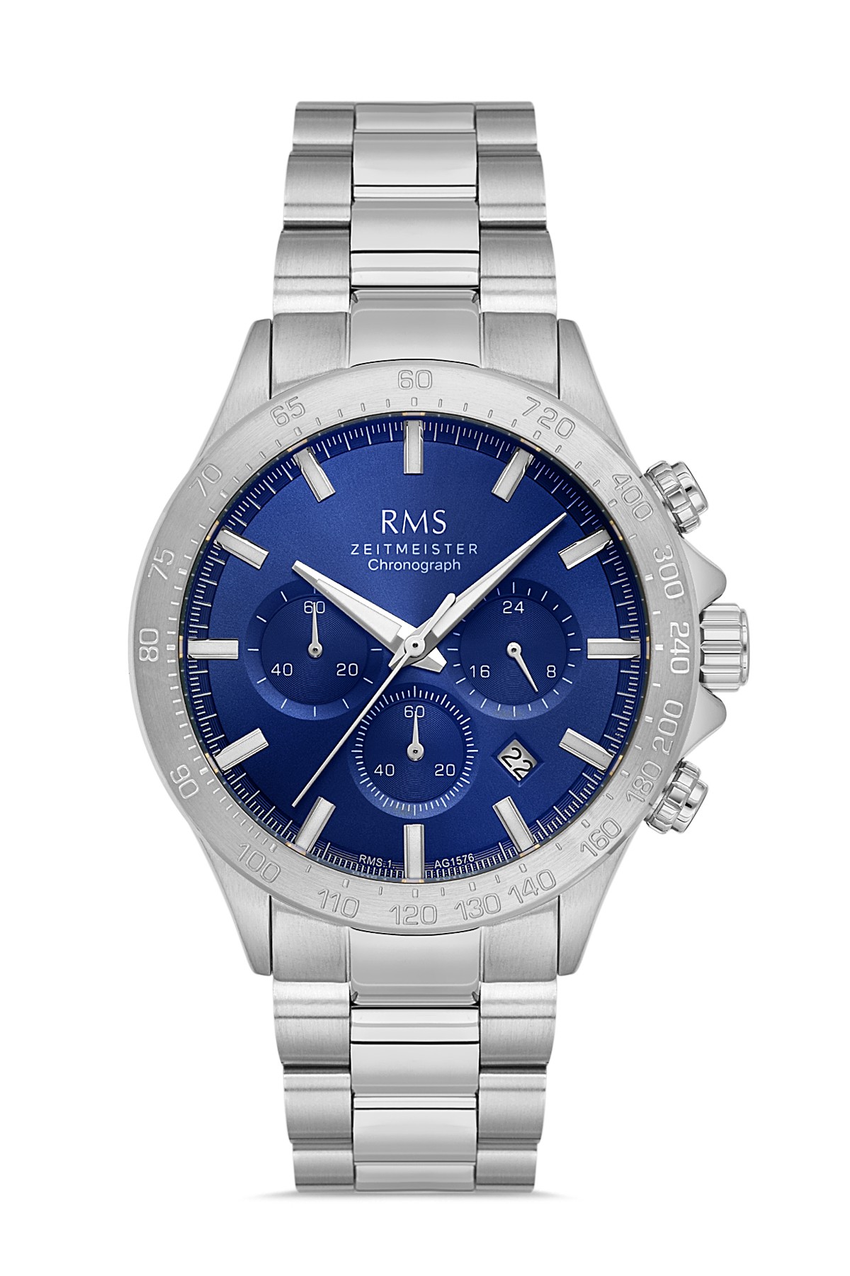 Erkek - Kronometre - Gümüş - Mavi̇ - Paslanmaz Masi̇f Çeli̇k - 3 Atm - Sertleşti̇ri̇lmi̇ş Mi̇neral Cam - Grand Romanson - 44