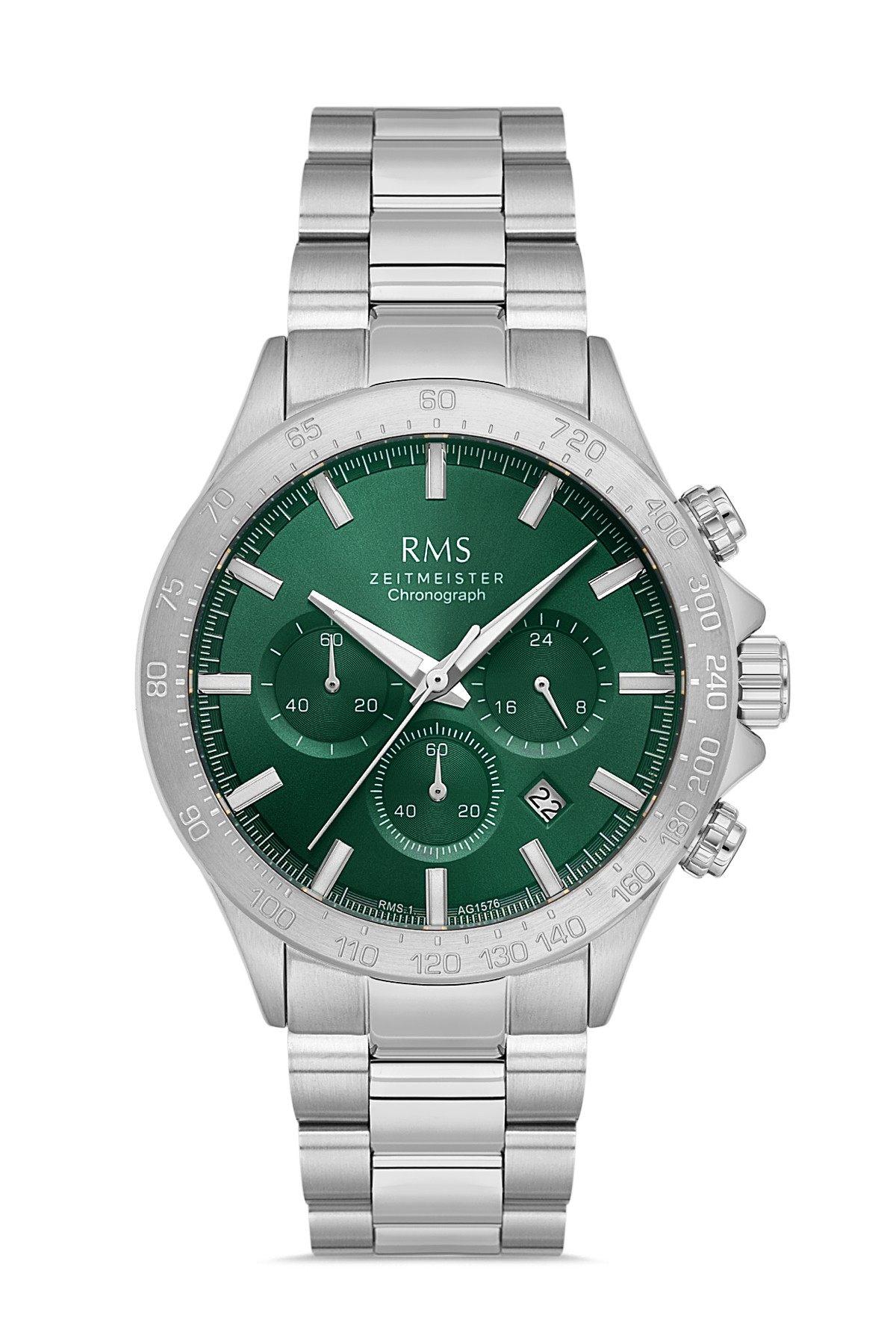 Erkek - Kronometre - Gümüş - Yeşi̇l - Paslanmaz Masi̇f Çeli̇k - 3 Atm - Sertleşti̇ri̇lmi̇ş Mi̇neral Cam - Grand Romanson - 44