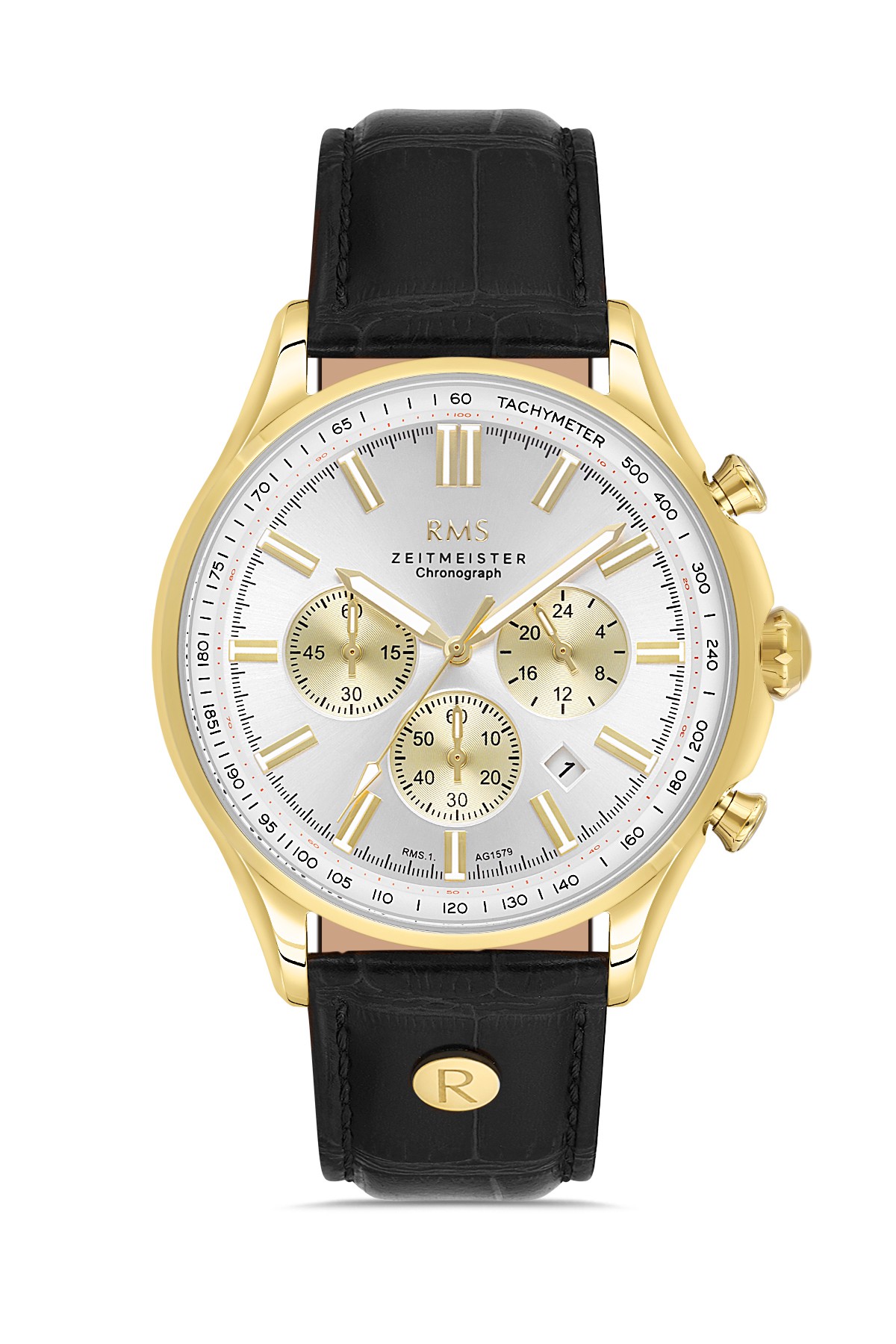 Erkek - Kronometre - Sari - Gümüş - Doğal Deri̇ Kordon - Si̇yah - 3 Atm - Sertleşti̇ri̇lmi̇ş Mi̇neral Cam - Grand Romanson - 45