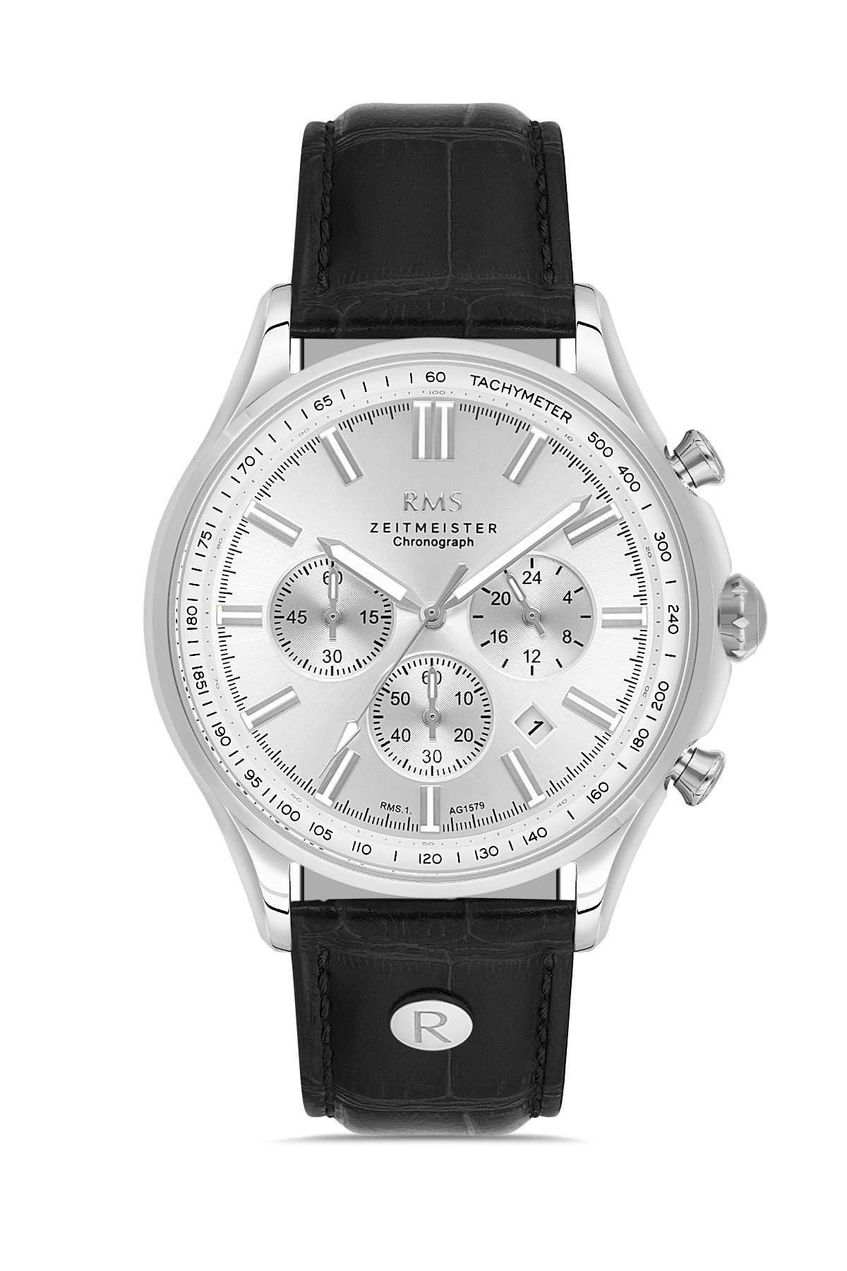 Erkek - Kronometre - Gümüş - Gümüş - Doğal Deri̇ Kordon - Si̇yah - 3 Atm - Sertleşti̇ri̇lmi̇ş Mi̇neral Cam - Grand Romanson - 45