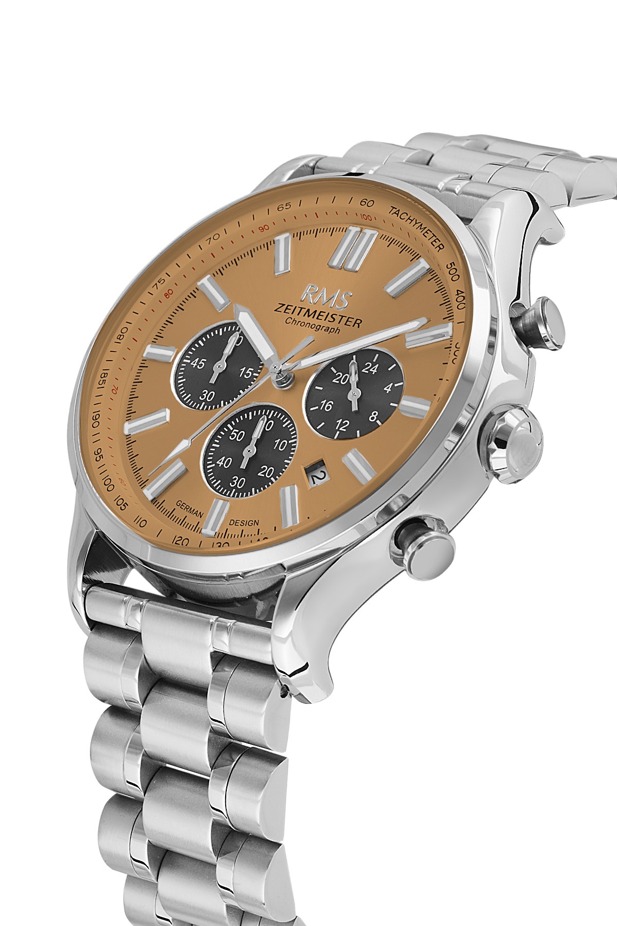 Erkek - Kronometre - Gümüş - Somon - Paslanmaz Masi̇f Çeli̇k - 5 Atm - Sertleşti̇ri̇lmi̇ş Mi̇neral Cam - Grand Romanson - 45