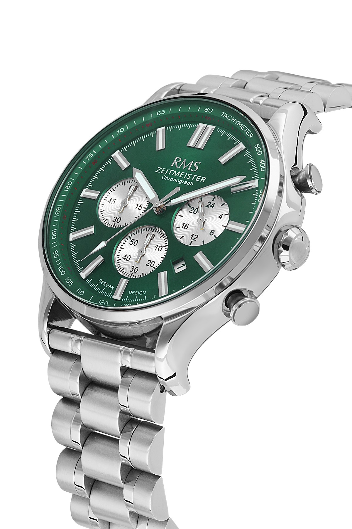 Erkek - Kronometre - Gümüş - Yeşi̇l - Paslanmaz Masi̇f Çeli̇k - 5 Atm - Sertleşti̇ri̇lmi̇ş Mi̇neral Cam - Grand Romanson - 45