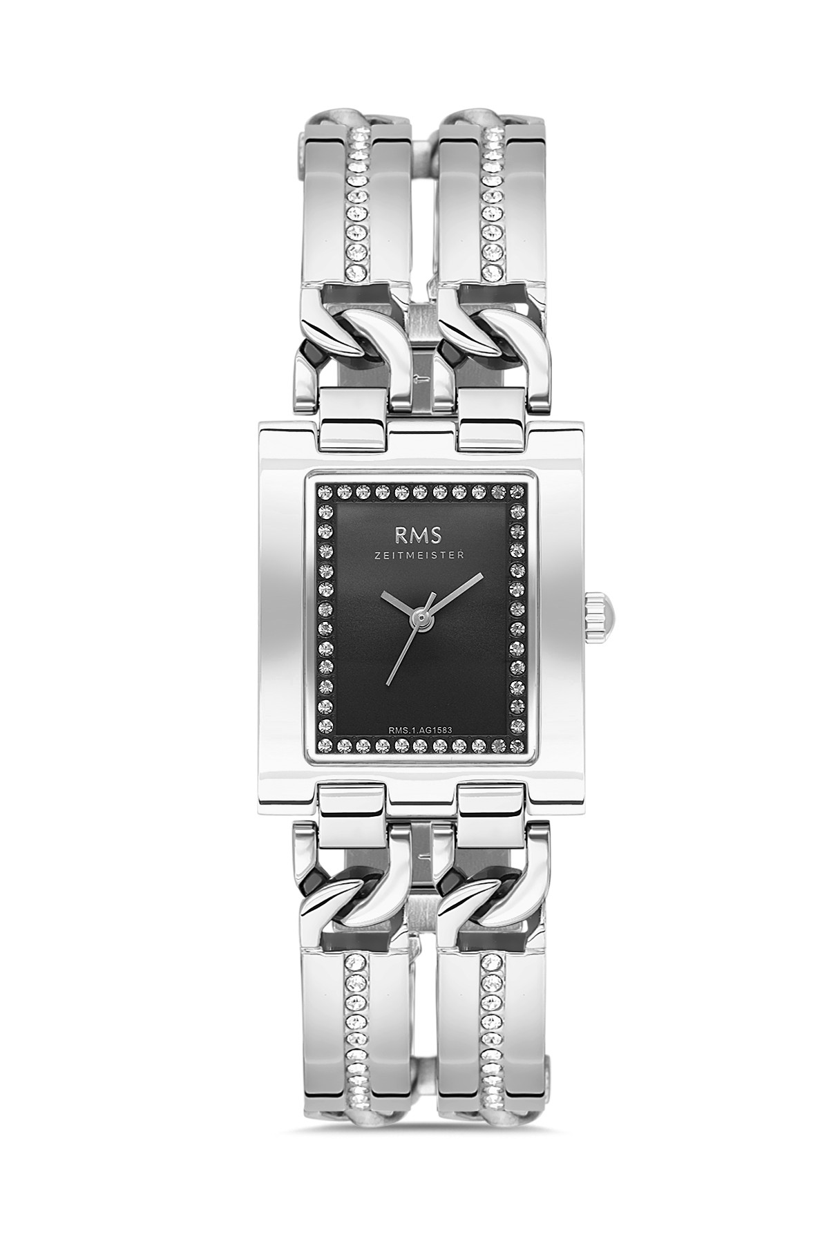 Kadın - Düz - Gümüş - Si̇yah - Paslanmaz Masi̇f Çeli̇k - 3 Atm - Sertleşti̇ri̇lmi̇ş Mi̇neral Cam - Grand Romanson - 24*30